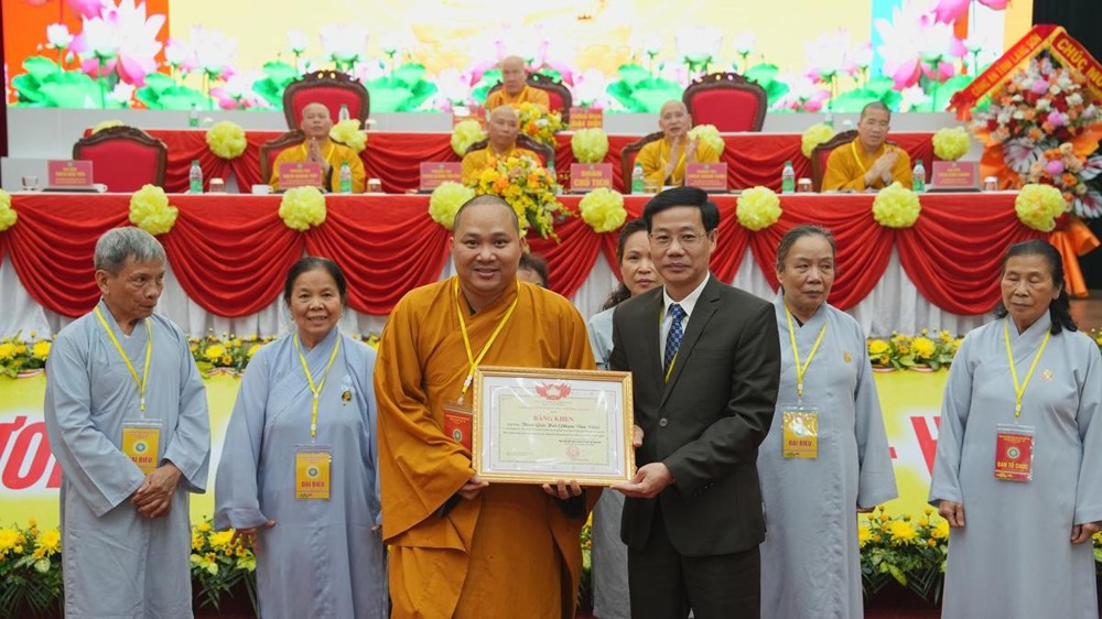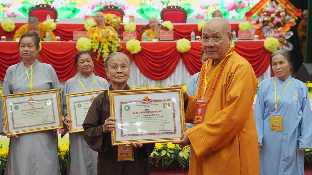 Nhân dịp này, UB MTTQVN tỉnh đã trao tặng bằng khen cho 10 cá nhân có đóng góp tích cực cho khối đại đoàn kết toàn dân tộc nhiệm kỳ 2022–2026. BTS GHPGVN tỉnh cũng trao bằng tuyên dương công đức cho 18 Phật tử có nhiều đóng góp cho các Phật sự thời gian qua; đồng thời, tặng hoa tri ân các vị đã từng tham gia Ban trị sự nhiệm kỳ IV, 2022-2026.