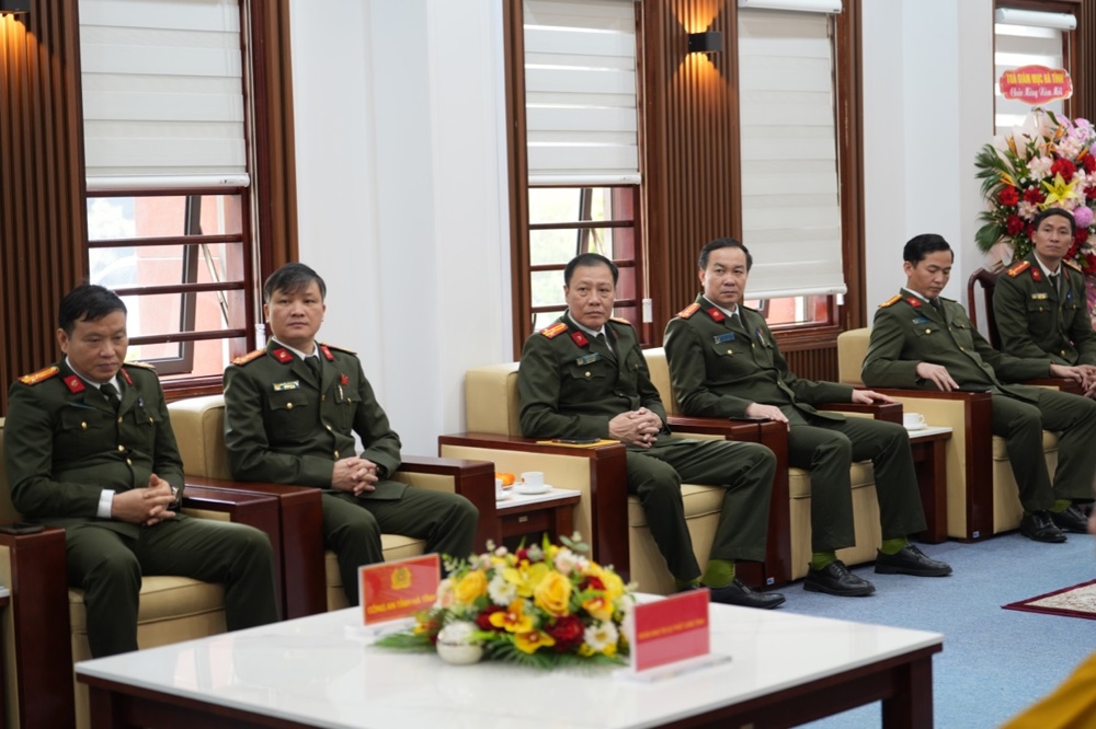 Tiếp đó, phái đoàn Ban Trị sự GHPGVN tỉnh Hà Tĩnh đã đến chúc Tết Công an tỉnh Hà Tĩnh. Tại trụ sở Công an Tỉnh, Thiếu tướng Nguyễn Xuân Thao – Ủy viên Ban Thường vụ Tỉnh ủy, Giám đốc Công an tỉnh đã thân mật tiếp đoàn.