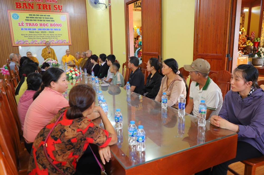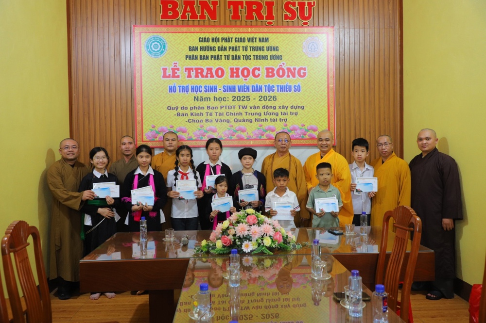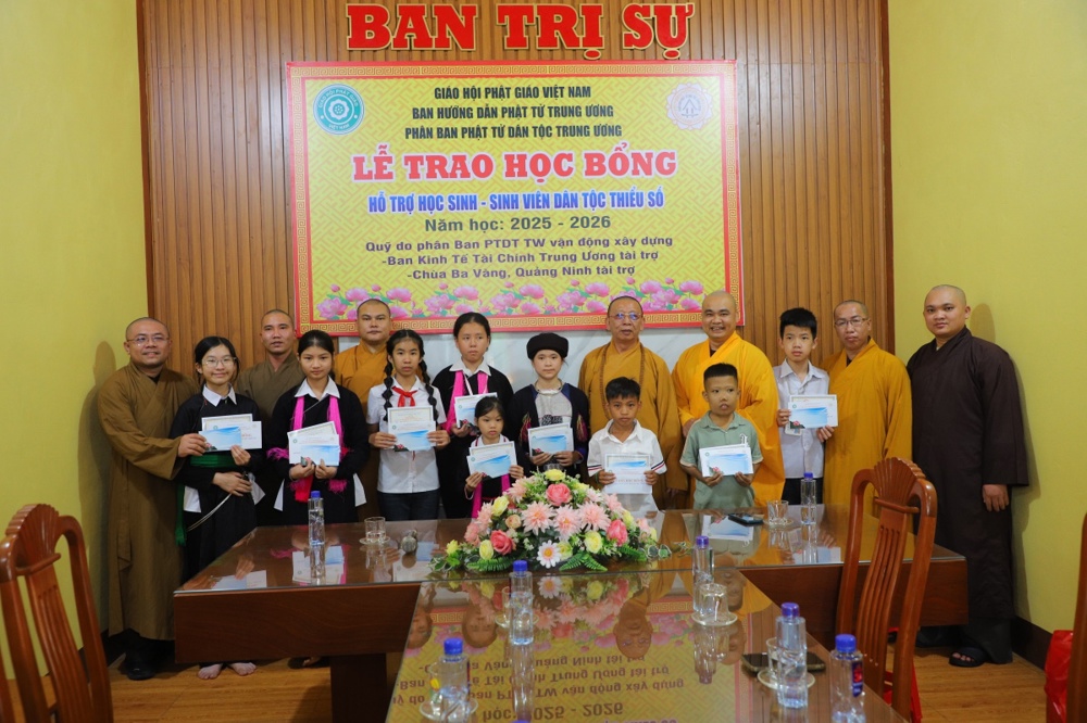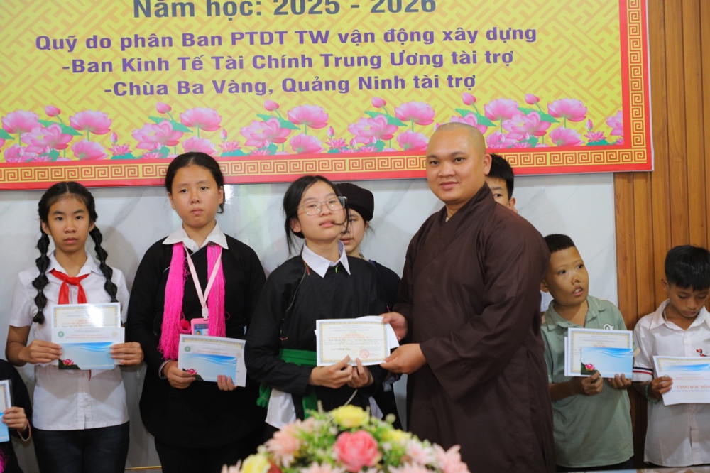 PSO - Chiều ngày 22/10/2025, tại khuôn viên chùa Thiên Trúc – Văn phòng Phân ban Phật tử Dân tộc Trung ương (PTDT) phía Bắc, Phân ban PTDT TƯ phối hợp cùng Ban Trị sự GHPGVN tỉnh Lào Cai tổ chức trao tặng những suất học bổng ý nghĩa, tiếp thêm động lực cho các em học sinh là con em đồng bào Phật tử dân tộc thiểu số tại tỉnh Lào Cai, vững bước trên con đường học vấn.