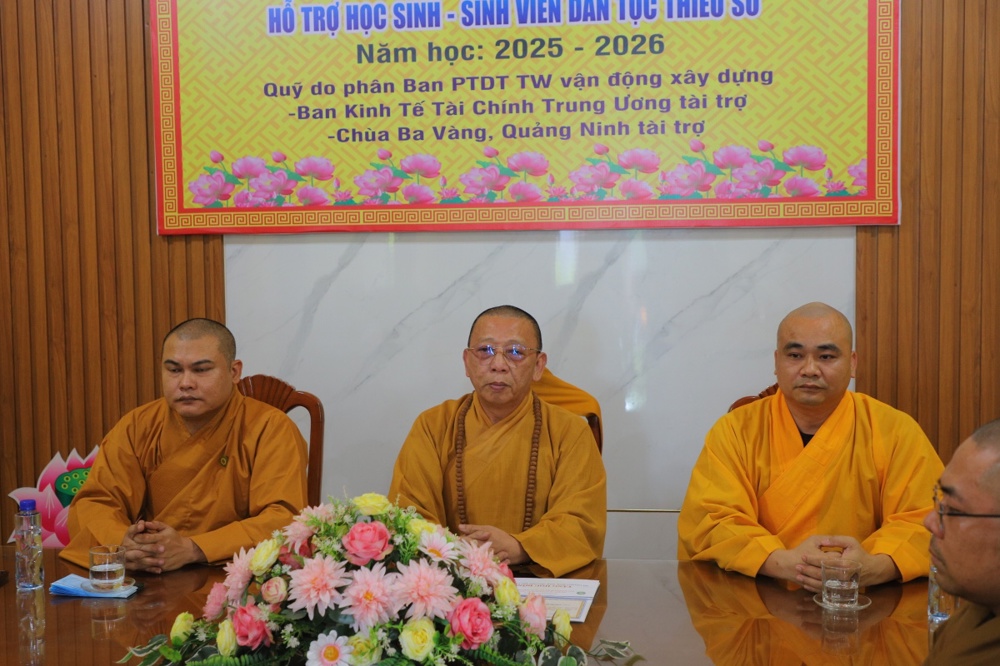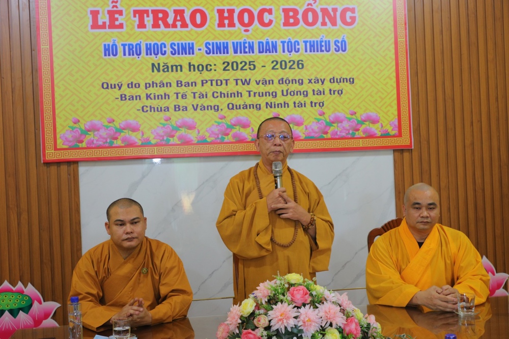 Phát biểu cảm tạ tại buổi lễ Đại đức Thích Chân Định, Trưởng Ban Tổ chức nhấn mạnh: Chương trình trao học bổng của Phân ban PTDT TƯ thể hiện tinh thần tương thân tương ái và trách nhiệm đối với xã hội một cách sâu sắc của chư Tôn đức GHPGVN, không chỉ đơn thuần là hỗ trợ vật chất, mà còn là việc gieo mầm và vun đắp tương lai.