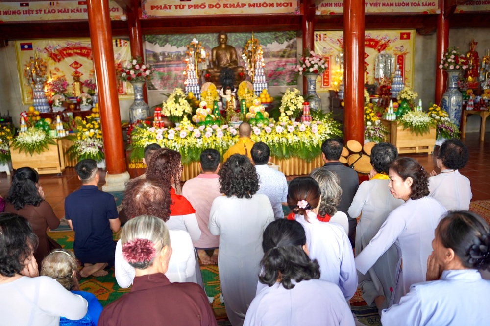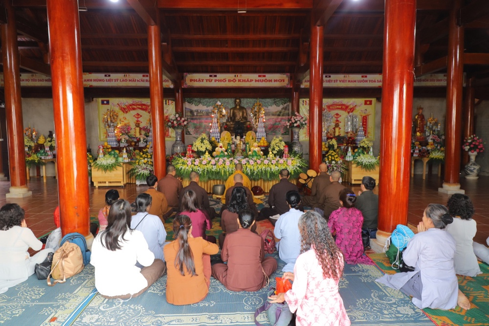 Chứng minh buổi lễ có Hoà thượng Thích Thọ Lạc, Uỷ viên Thường trực HĐTS GHPGVN, Trưởng Ban Văn hoá TƯ, Phó Trưởng ban Thường trực BTS GHPGVN tỉnh Nghệ An, Trưởng Ban Tổ chức cùng chư Tôn đức BTS GHPGVN tỉnh Nghệ An, Liên minh Phật giáo tỉnh Xiêng Khoảng và đông đảo nhân dân Phật tử cùng về tham dự.