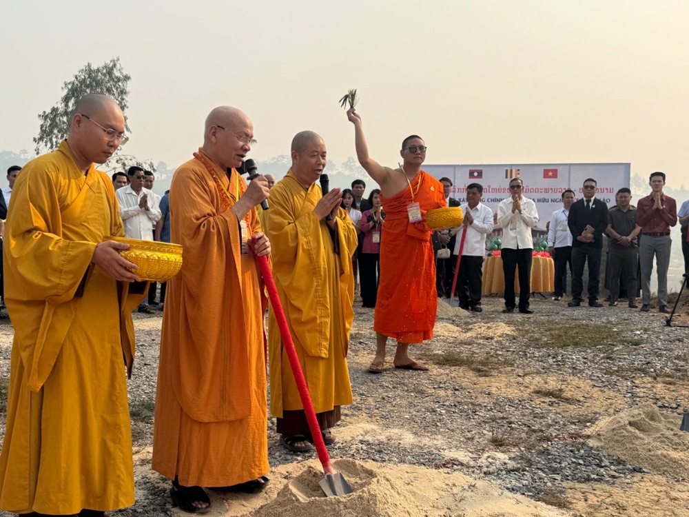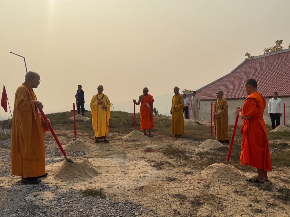 Chư Tôn đức cử hành nghi lễ khởi công xây dựng Chính điện chùa Hữu Nghị Việt Nam - Lào.