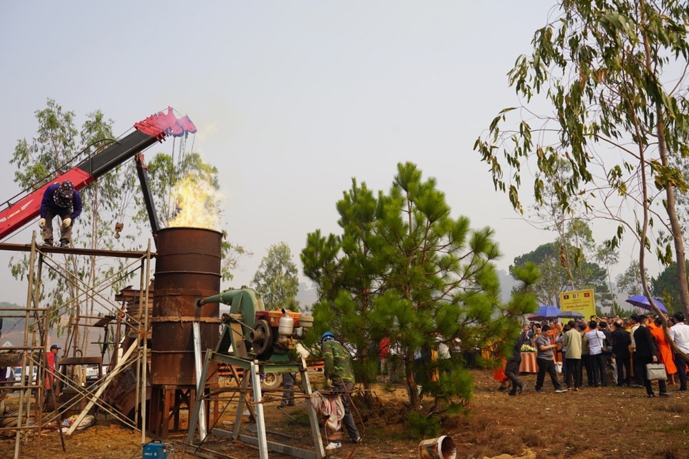 Hòa thượng bày tỏ niềm phấn khởi khi tham dự Lễ hội Đại đoàn kết Lào - Việt Nam trên mảnh đất Xiêng Khoảng anh hùng. Ngài nhấn mạnh đây là dịp quan trọng để tri ân các anh hùng liệt sĩ đã hy sinh vì Tổ quốc. Đồng thời, việc khởi công đúc Đại hồng chung nặng 3.000kg, xây dựng Chính điện và Tháp Cửu phẩm Liên hoa là những dấu ấn Phật giáo quan trọng. Các công trình này không chỉ có giá trị tâm linh to lớn cho cả hai dân tộc mà còn là điểm tựa văn hóa để các thế hệ mai sau đến học tập và chiêm bái.