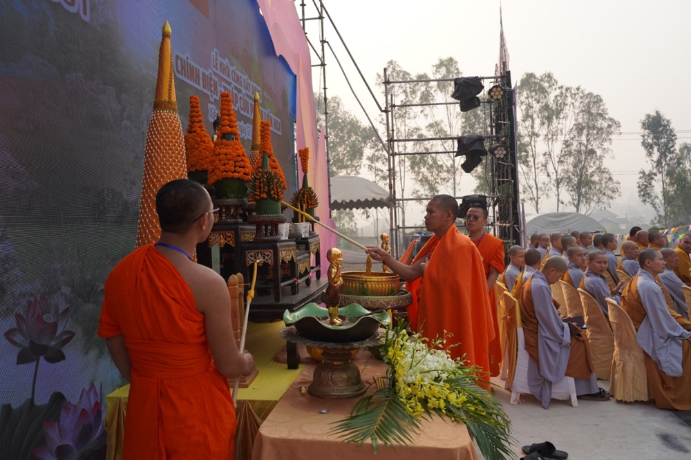 Chư Tôn đức làm lễ khởi công động thổ và cử hành nghi thức Tắm Phật trong không khí tràn đầy đạo vị.