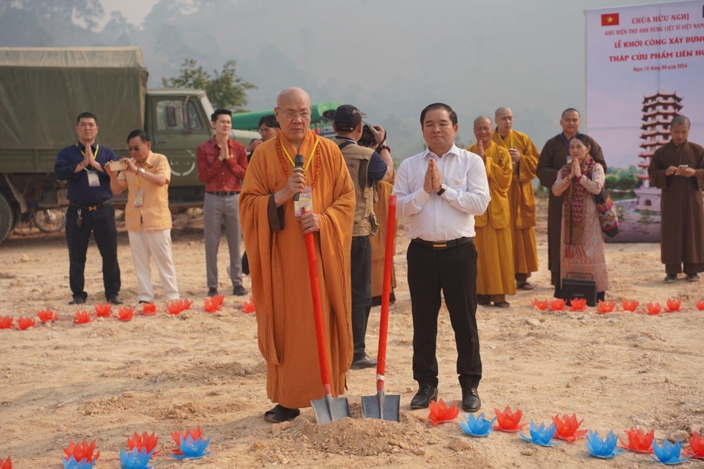 Việc khởi công các hạng mục trọng điểm tại Chùa Hữu Nghị mang những ý nghĩa thiêng liêng riêng biệt bao gồm Chính điện là trung tâm sinh hoạt tâm linh, nơi kết nối con người trong suối nguồn giáo lý giác ngộ. Tháp Cửu phẩm Liên hoa là Biểu tượng của sự thanh tịnh, siêu thoát, gửi gắm ước nguyện bình an cho muôn loài và sự siêu sinh tịnh cảnh cho các anh hùng liệt sĩ. Đại hồng chung là Tiếng chuông thức tỉnh lòng từ bi, hướng thiện, đồng thời là âm thanh an ủi những linh hồn đã ngã xuống vì đại nghĩa trên mảnh đất này.