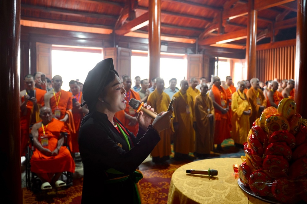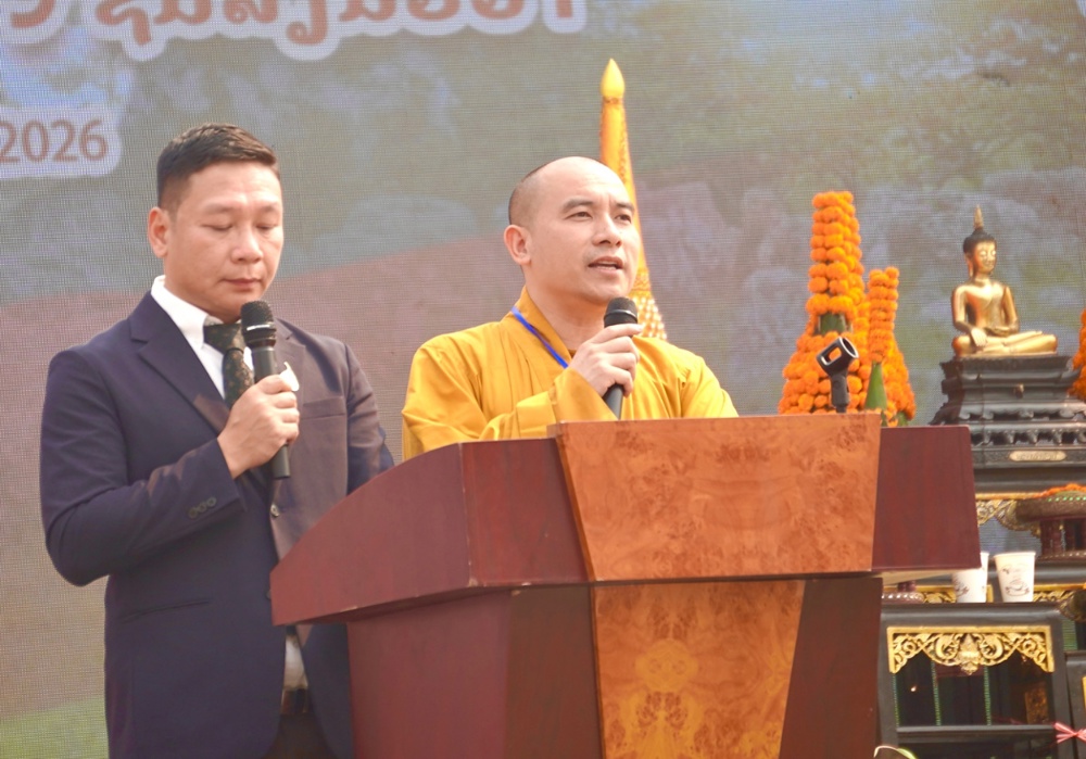Hòa thượng bày tỏ niềm phấn khởi khi tham dự Lễ hội Đại đoàn kết Lào - Việt Nam trên mảnh đất Xiêng Khoảng anh hùng. Ngài nhấn mạnh đây là dịp quan trọng để tri ân các anh hùng liệt sĩ đã hy sinh vì Tổ quốc. Đồng thời, việc khởi công đúc Đại hồng chung nặng 3.000kg, xây dựng Chính điện và Tháp Cửu phẩm Liên hoa là những dấu ấn Phật giáo quan trọng. Các công trình này không chỉ có giá trị tâm linh to lớn cho cả hai dân tộc mà còn là điểm tựa văn hóa để các thế hệ mai sau đến học tập và chiêm bái.