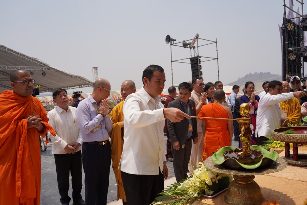 Ông Bày tỏ sự tin tưởng vào sự quan tâm đặc biệt của lãnh đạo Đảng, Nhà nước và Giáo hội hai nước dành cho dự án. Nhân dịp Tết cổ truyền Bun Pi May (Phật lịch 2569), ông gửi lời chúc sức khỏe, an lạc và hạnh phúc đến lãnh đạo, tăng ni và Phật tử hai nước.