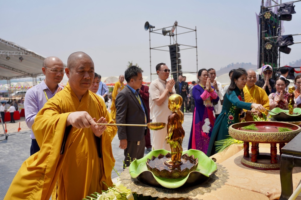 Chư Tôn đức làm lễ khởi công động thổ và cử hành nghi thức Tắm Phật trong không khí tràn đầy đạo vị.