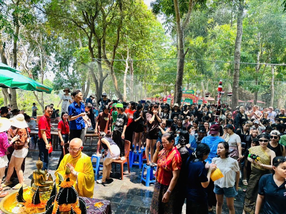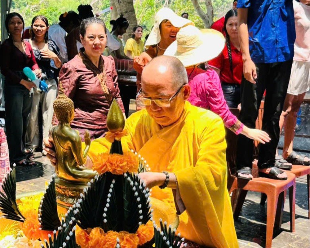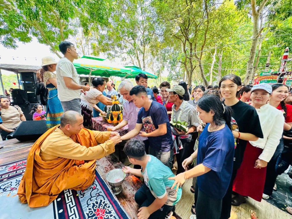 Sự hiện diện của chư Tôn đức Ban Văn hóa Trung ương đã góp phần làm tăng thêm tính trang nghiêm và ý nghĩa tâm linh của buổi lễ. Trong phần nghi lễ chính, chư Tôn đức đã thực hiện nghi thức tụng kinh cầu an, ban phúc lành và tham gia nghi lễ tắm Phật – một nghi thức quan trọng trong dịp Tết Bunpimay, mang ý nghĩa thanh tịnh hóa thân tâm, gột rửa những điều không may của năm cũ, hướng đến một năm mới an lành, hạnh phúc.