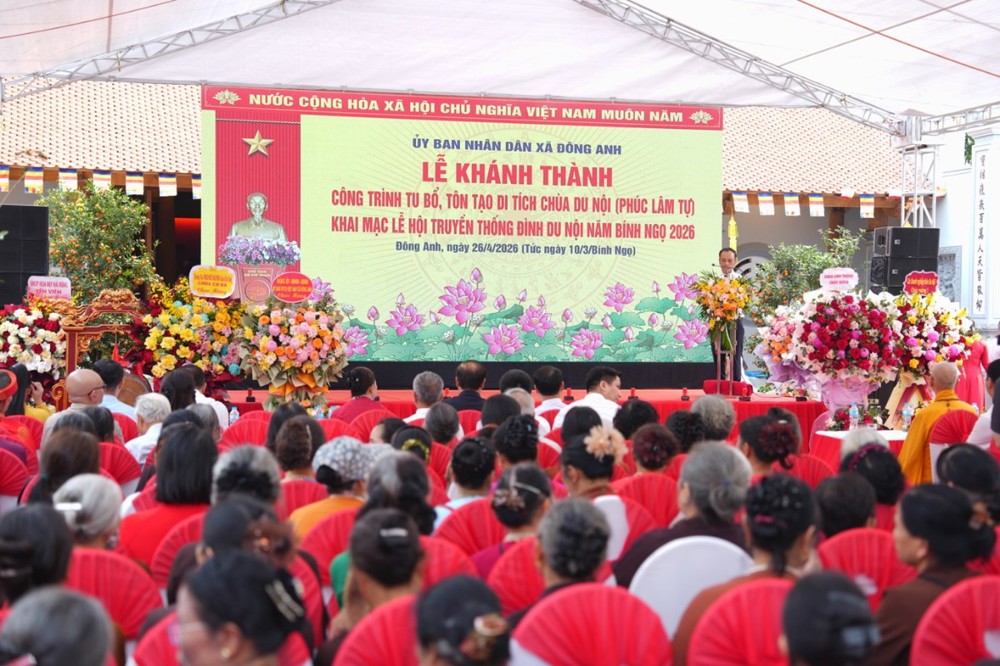 Sáng ngày 26/04/2026, tại chùa Du Nội (hay còn gọi là Phúc Lâm tự - xã Đông Anh, TP. Hà Nội), Lễ khánh thành công trình tu bổ, tôn tạo Di tích chùa Du Nội và Khai mạc Lễ hội đình Du Nội năm Bính Ngọ 2026 đã trang trọng diễn ra. Đây là dấu mốc hết sức quan trọng; cũng là niềm vinh dự, tự hào của toàn thể Phật tử và nhân dân địa phương