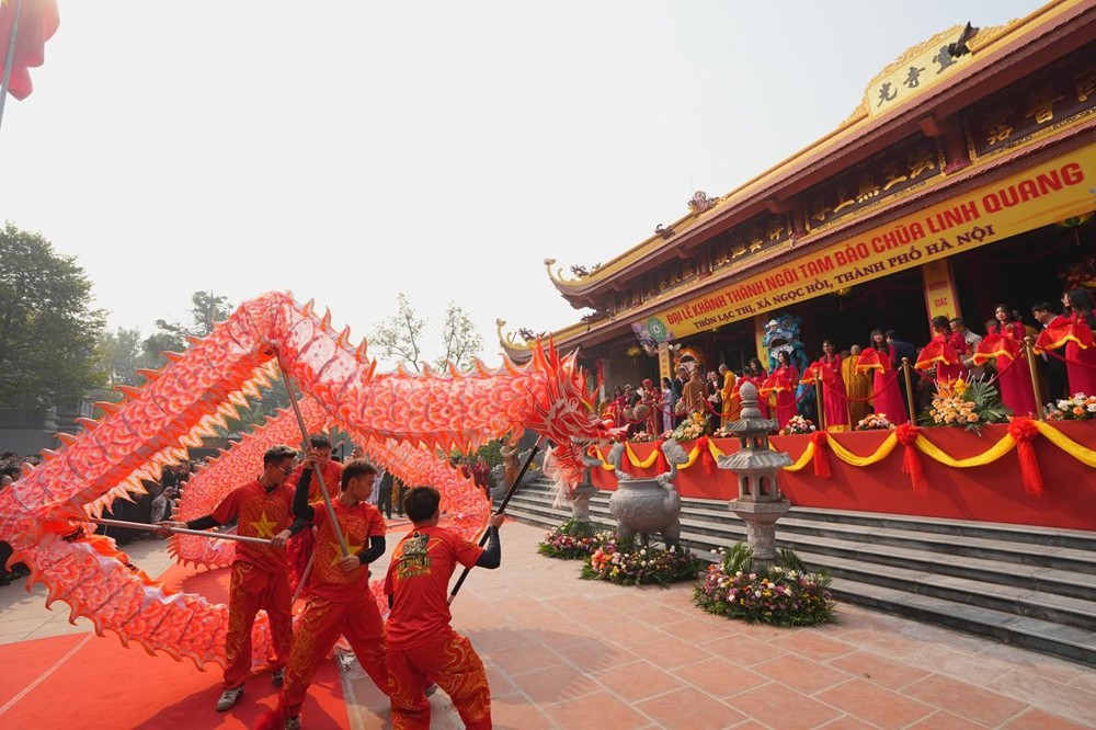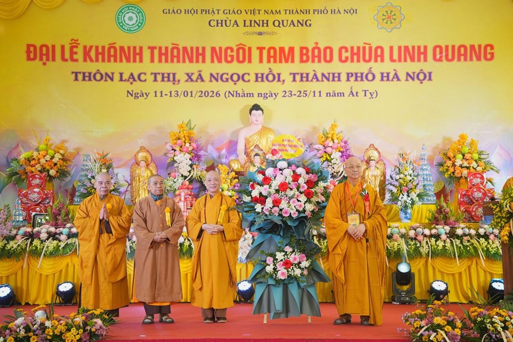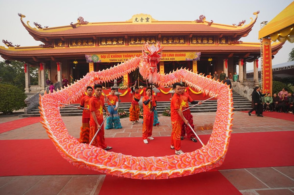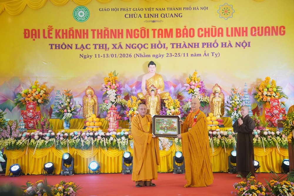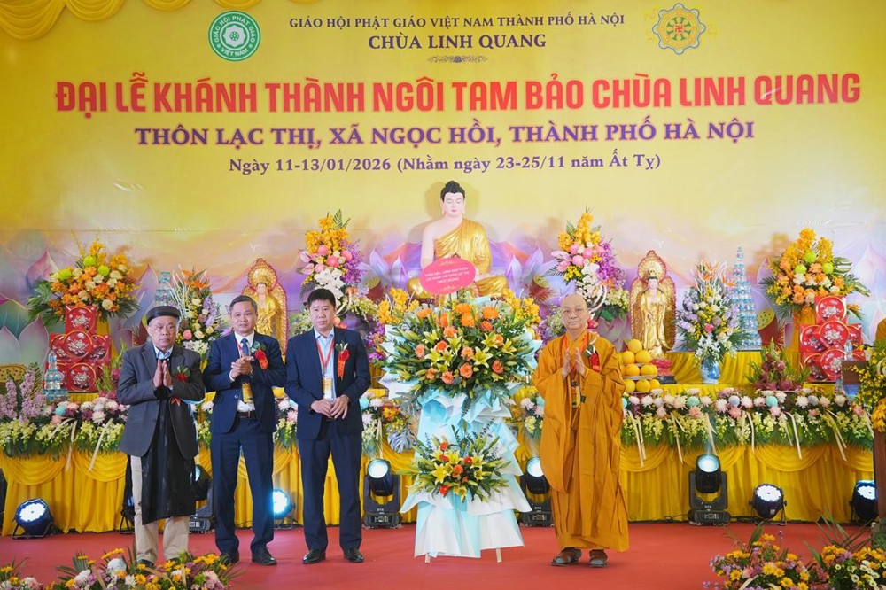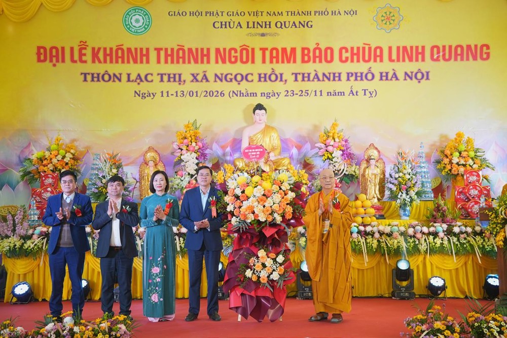 Tại đây, Hòa thượng cũng vui mừng khi được biết xã Ngọc Hồi trong những ngày đầu năm 2026 đã long trọng tổ chức hai sự kiện văn hóa – tâm linh có ý nghĩa sâu sắc: khánh thành Đền thờ Hoàng đế Quang Trung - vị anh hùng dân tộc lẫy lừng trong lịch sử giữ nước, và hôm nay là khánh thành Đại hùng Bảo điện chùa Lạc Thị (Linh Quang tự). Hai sự kiện ấy – một bên tôn vinh chính khí và hào khí dân tộc, một bên tỏa sáng ánh đạo từ bi và trí tuệ – đã hòa quyện, tạo nên một mùa xuân cát tường, thấm đẫm bản sắc văn hóa Việt Nam.