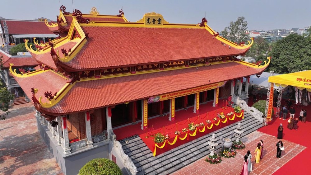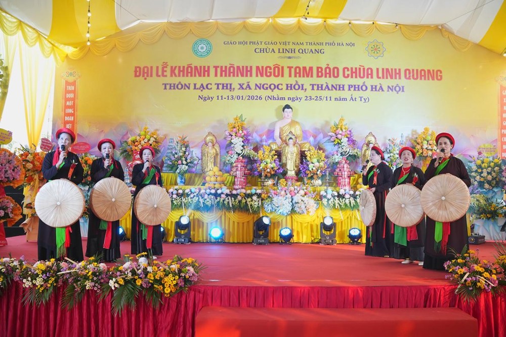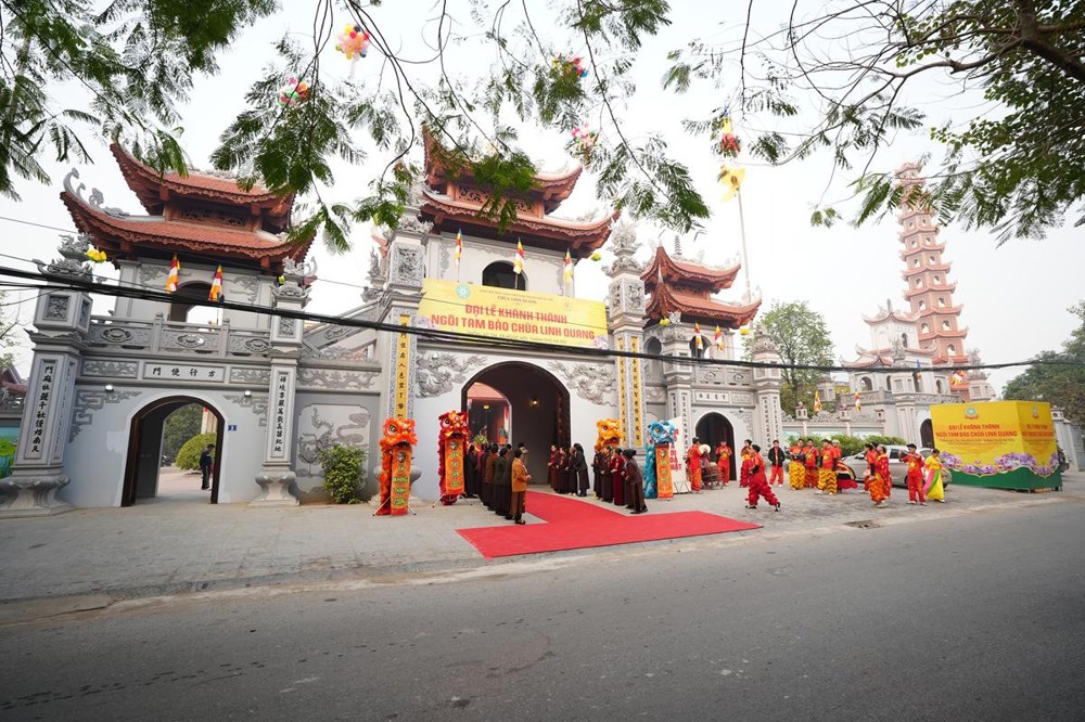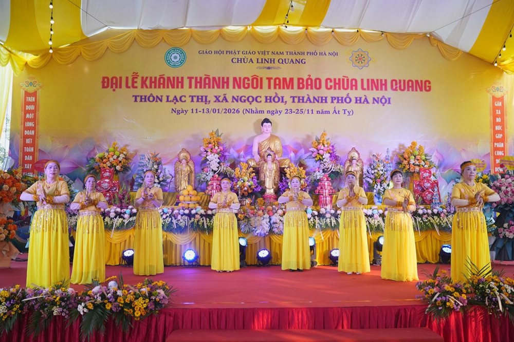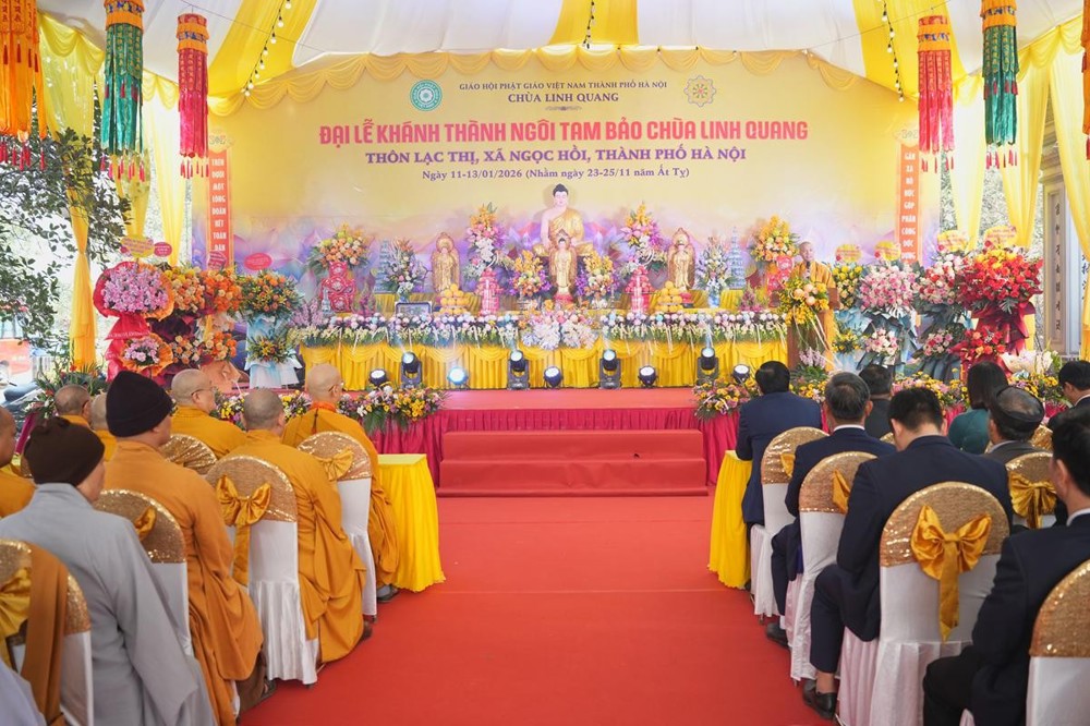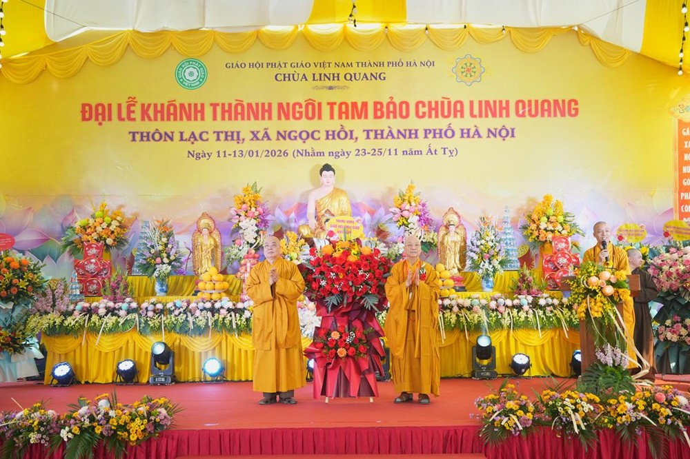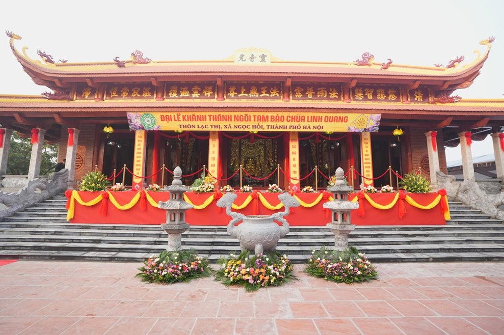 Trong niềm hân hoan, Ông Hoàng Tuấn Hội – Trưởng thôn Lạc Thị, xã Ngọc Hồi đã báo cáo quá trình trùng tu xây dựng chùa Lạc Thị - hay còn gọi là chùa Linh Quang. Theo đó, Chùa được xây dựng năm 1716, tọa lạc trên vùng đất cao thiêng liêng ở đầu làng. Trải qua sự thăng trầm của thời gian, chùa đã nhiều lần được trùng tu, tôn tạo, trong đó lần khánh thành gần nhất vào năm 2012, tiếp tục khẳng định vai trò của chùa trong đời sống văn hóa – tâm linh của địa phương. Đến tháng 10/2024, chùa tiến hành khởi công tôn tạo ngôi Tam bảo, với tổng kinh phí tu bổ 16 tỷ đồng. Sau 15 tháng ròng rã xây dựng, đến nay ngôi Đại hùng Bảo điện đã huy hoàng, trang nghiêm, thanh tịnh. Đây là sự đơm hoa kết trái từ bao tâm tư, nguyện vọng của nhân dân lớn lên trên mảnh đất Lạc Thị.