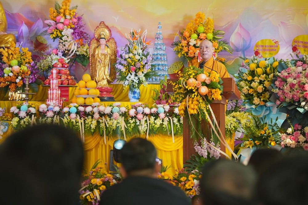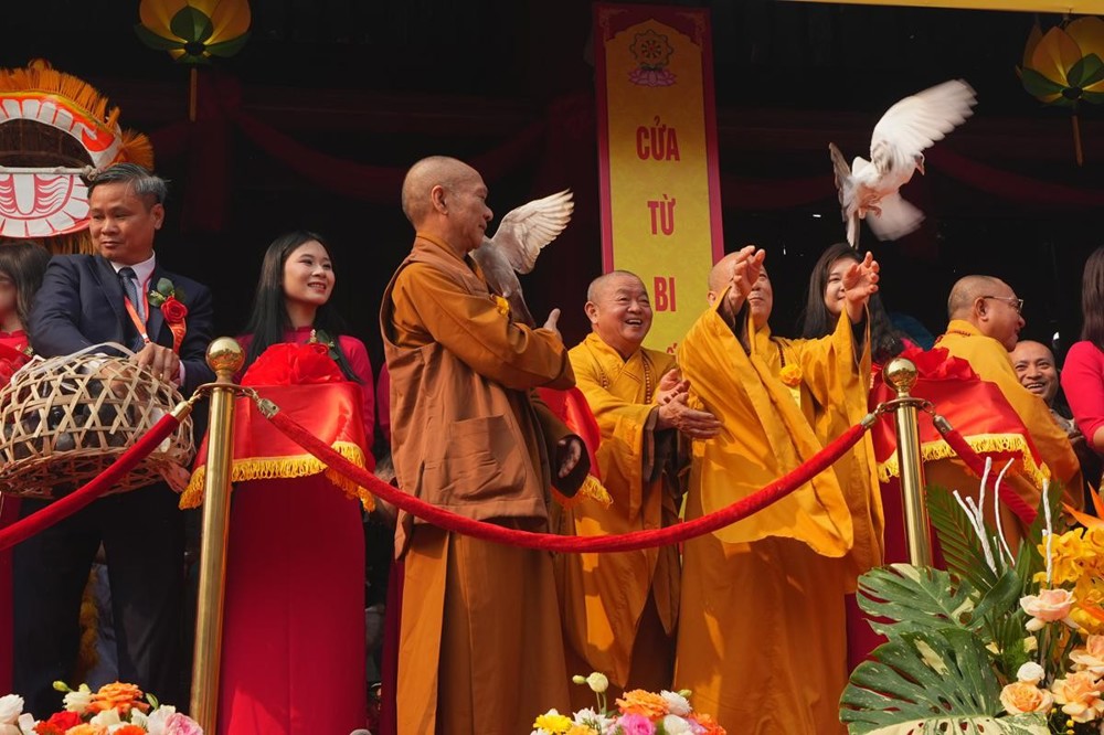 Khép lại buổi lễ, chư Tôn đức đã làm lễ phóng sinh chim bồ câu - biểu trưng cho tinh thần từ bi, hòa bình và giải thoát trong Đạo Phật; đồng thời thực hiện nghi thức cắt băng khánh thành, niêm hương tại Đại Hùng Bảo Điện, thành tâm cầu nguyện quốc thái dân an, thế giới hòa bình, mưa thuận gió hòa, Phật pháp hưng long, đất nước Việt Nam ngày càng hưng thịnh, nhân dân ấm no, hạnh phúc.