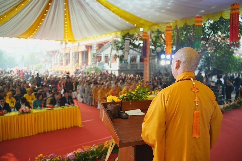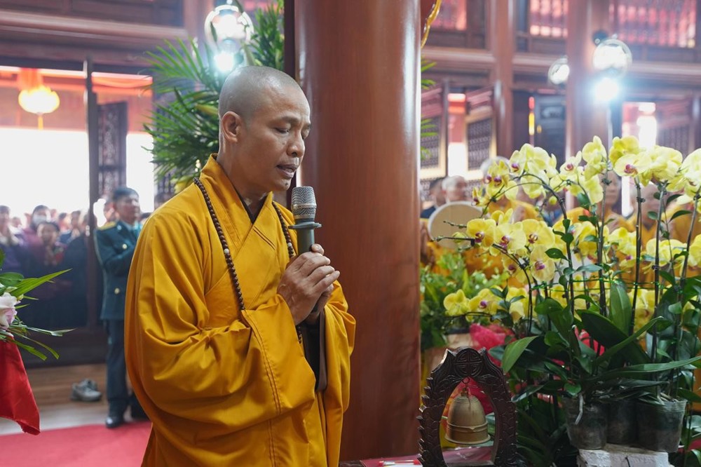 Phát biểu khai mạc, Trưởng lão Hòa thượng Thích Thanh Nhã – Chánh Văn phòng HĐCM, Trụ trì chùa Lạc Thị bày tỏ niềm thành kính và xúc động trước sự chứng minh của Chư tôn đức, sự hiện diện của quý đại biểu khách quý cũng như toàn thể nhân dân Phật tử đã không quản ngại sức khỏe và thời gian vàng ngọc, vì tình đạo – nghĩa đời đến chứng minh và tham dự Đại lễ khánh thành ngôi Tam bảo chùa Lạc Thị. Đây không chỉ là một công trình kiến trúc, mà là kết tâm của tín tâm, của công đức. Mỗi viên gạch, mỗi mái ngói đều thấm đượm mồ hôi, công sức và tấm lòng của chư Tăng, Phật tử, các nhà hảo tâm và nhân dân thập phương. Trưởng lão Hòa thượng hi vọng chùa Lạc Thị sẽ tiếp tục là nơi hoằng dương chính pháp, giáo dục đạo đức, nuôi dưỡng đời sống tâm linh lành mạnh, góp phần xây dựng quê hương ngày càng an hòa, nghĩa tình.