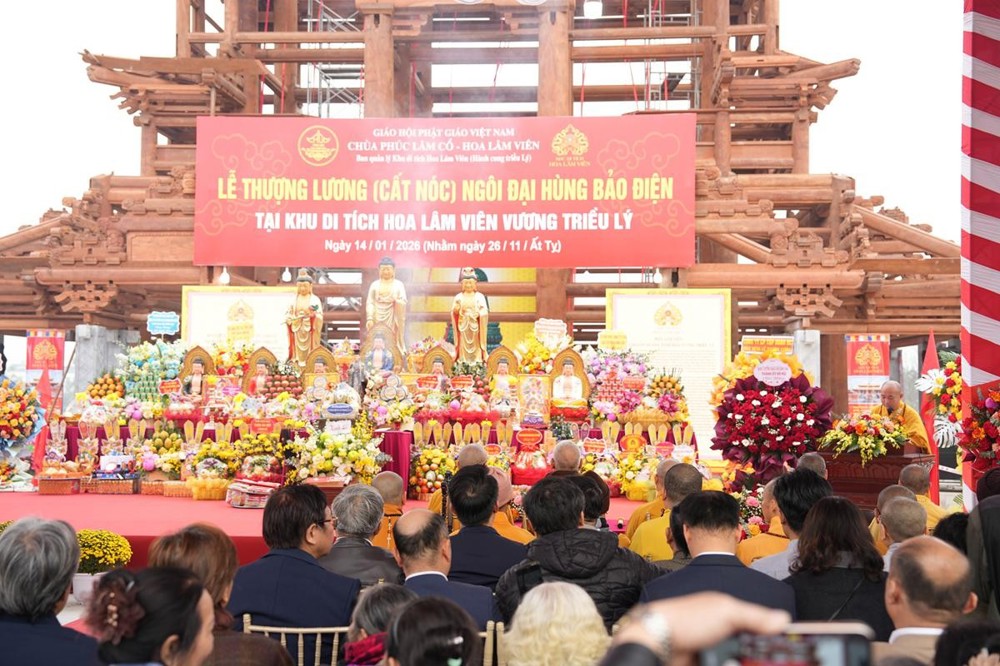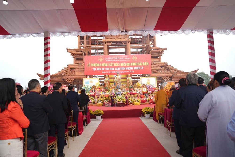 PSO - Sáng ngày 14/01/2026, Lễ Thượng Lương công trình tu bổ, tôn tạo di tích chùa Phúc Lâm cổ - Hoa Lâm Viên (thôn Du Nội, xã Đông Anh, TP. Hà Nội) đã trang nghiêm diễn ra. Đây là nghi lễ truyền thống mang ý nghĩa đánh dấu một mốc son quan trọng trong tiến trình kiến thiết ngôi già làm trên vùng đất Hoa Lâm xưa, gắn liền với di tích văn hóa – lịch sử triều Lý.