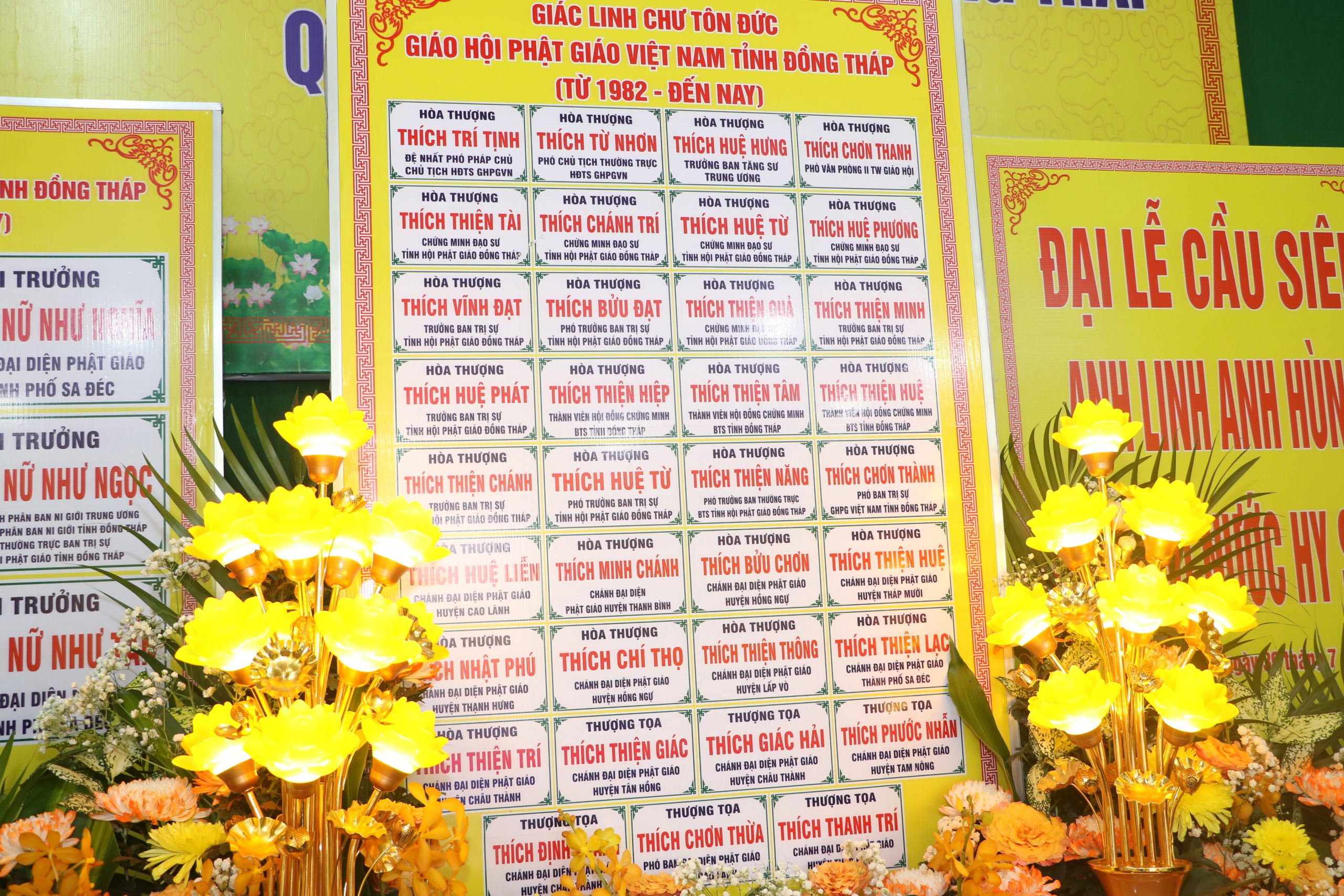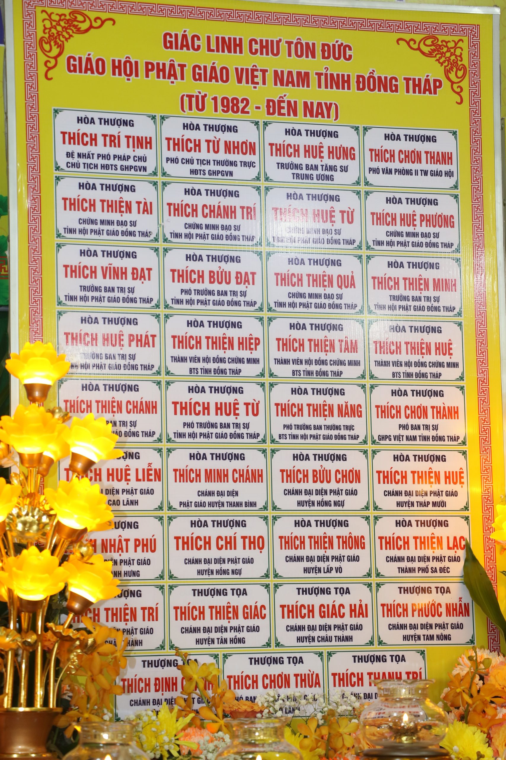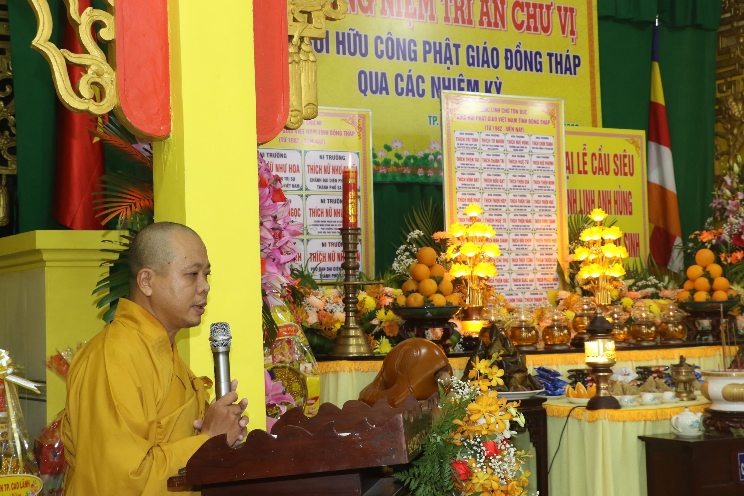 Sau lời diễn văn Thượng tọa Thích Thiện Chí - Trưởng ban Nghi lễ GHPGVN tỉnh sám chủ lễ tưởng niệm và tuyên đọc phương danh chư Tôn đức Tăng Ni hữu công Phật giáo Đồng Tháp qua các thời kỳ. Chư tôn đức và chánh quyền đại biểu niêm hương tưởng niệm tiền bối đã có công với Phật giáo.