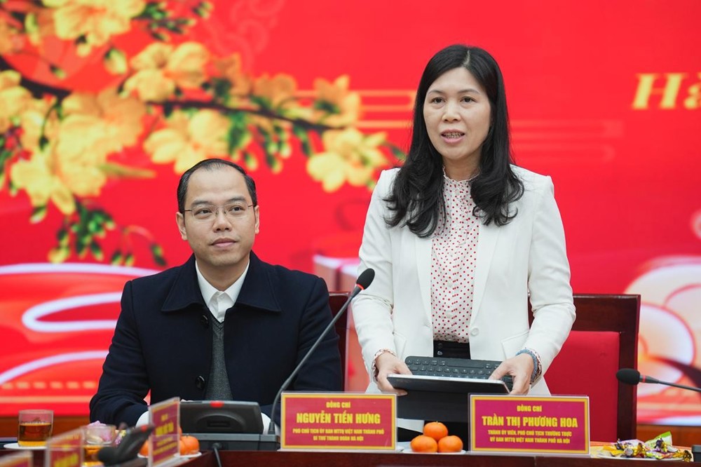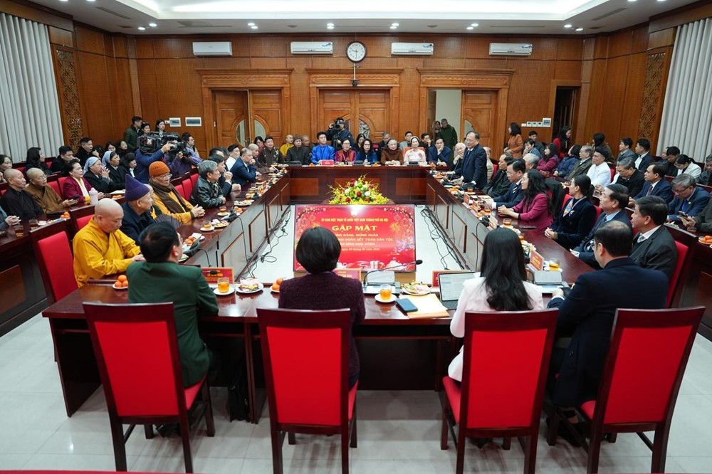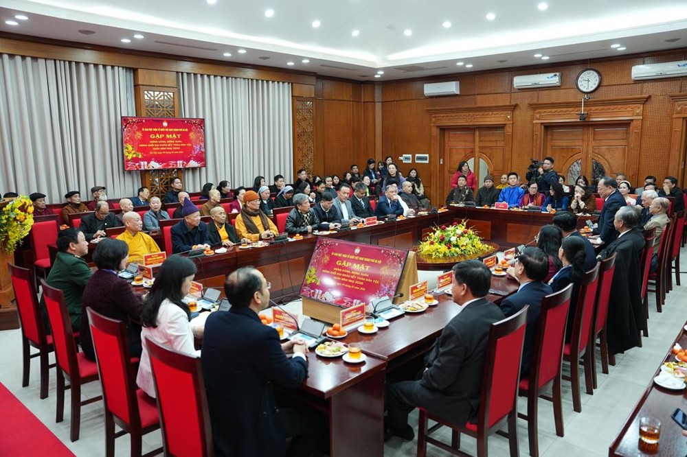 Trân trọng gửi lời chúc mừng năm mới đến các đại biểu, Chủ tịch Ủy ban MTTQ Việt Nam thành phố Hà Nội Bùi Huyền Mai khẳng định, năm 2025, các tầng lớp nhân dân, thành phố Hà Nội đã đạt được nhiều kết quả quan trọng. Trong đó, MTTQ Việt Nam các cấp thành phố đã làm tốt vai trò tập hợp khối đại đoàn kết toàn dân, thực hiện có hiệu quả phong trào thi đua yêu nước, các cuộc vận động; chăm lo cho người nghèo; lắng nghe ý kiến, tâm tư, nguyện vọng của các tầng lớp nhân dân, tích cực triển khai các chương trình giám sát, phản biện xã hội, phòng chống tham nhũng, lãng phí, thực hành tiết kiệm, góp ý xây dựng Đảng, xây dựng chính quyền, góp phần tạo niềm tin của nhân dân với Đảng với Nhà nước và chính quyền các cấp... Những kết quả đó có sự đóng góp quan trọng của đội ngũ nhân sĩ, trí thức, văn nghệ sĩ, các chức sắc tôn giáo, đồng bào các dân tộc thiểu số và kiều bào Thủ đô ở trong và ngoài nước - những người bằng trí tuệ, uy tín, tinh thần trách nhiệm và tình yêu Thủ đô, đã luôn đồng hành, chia sẻ, hiến kế, lan tỏa các giá trị tốt đẹp trong cộng đồng.