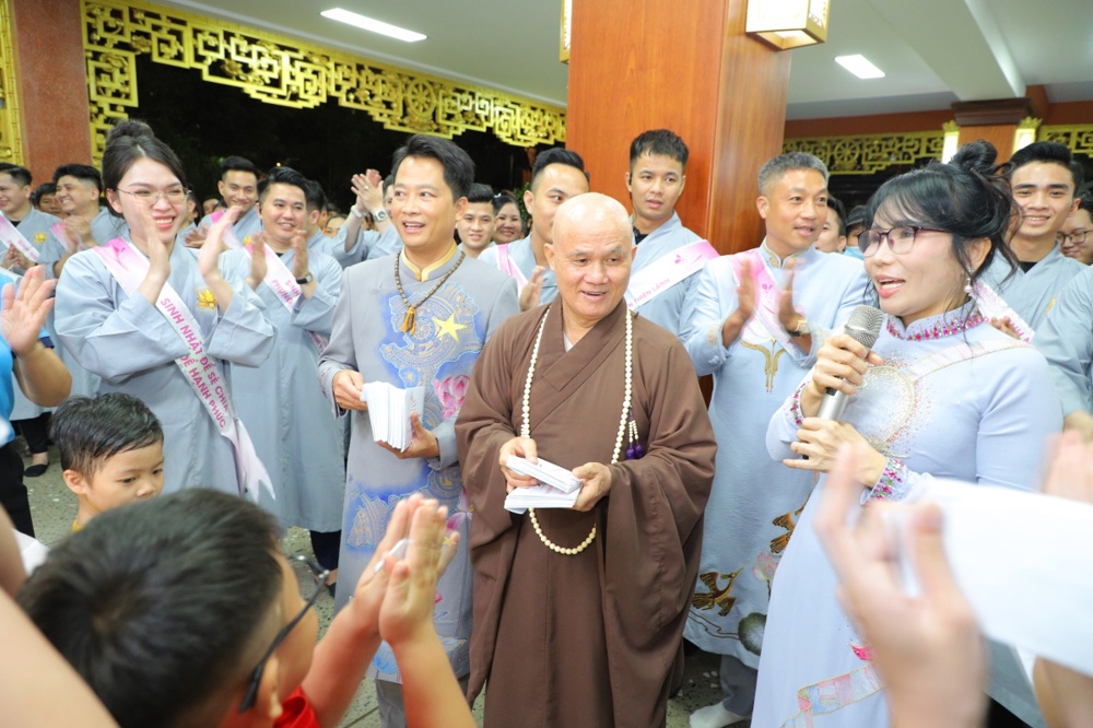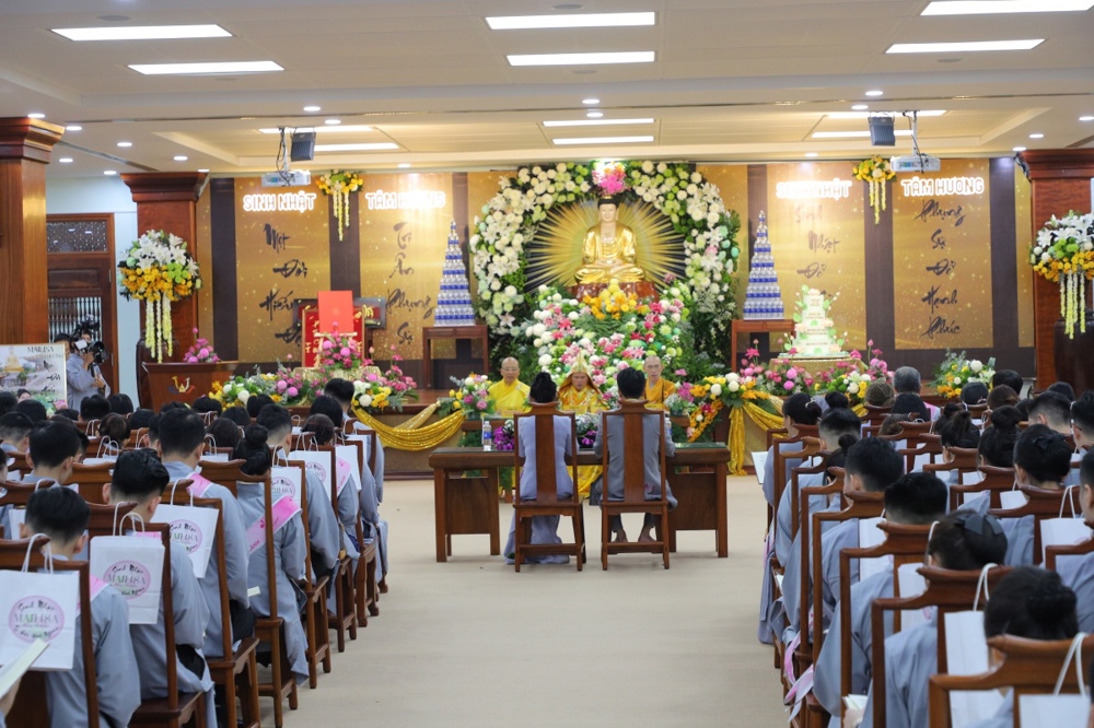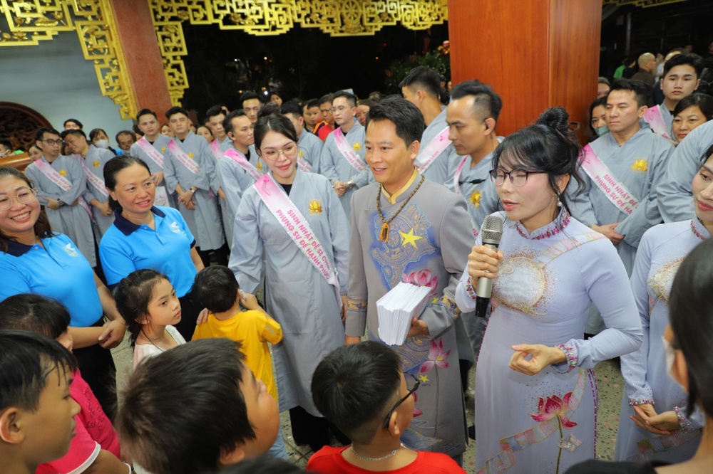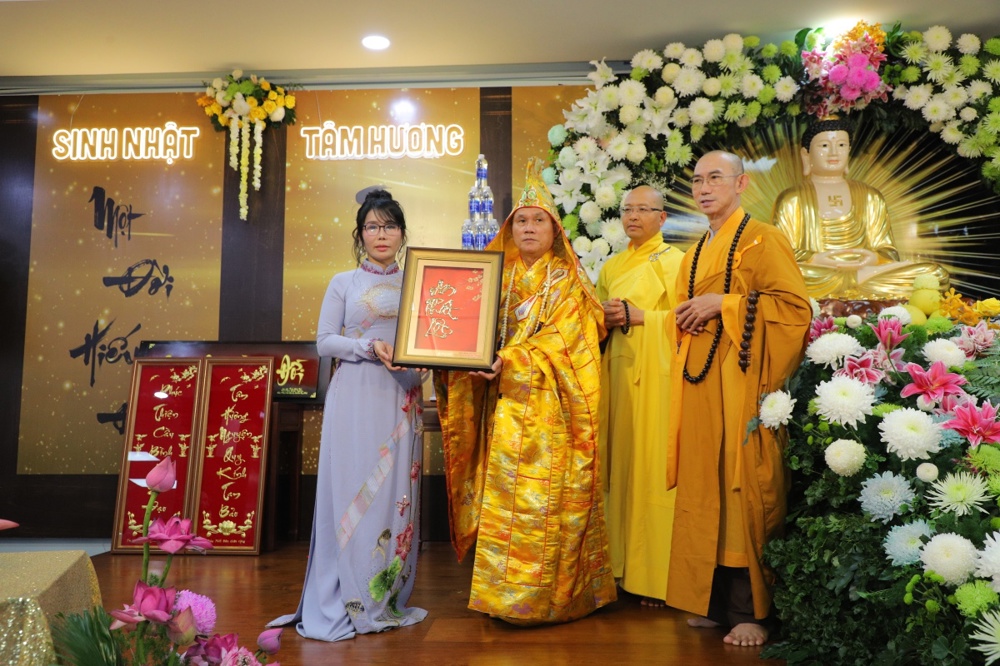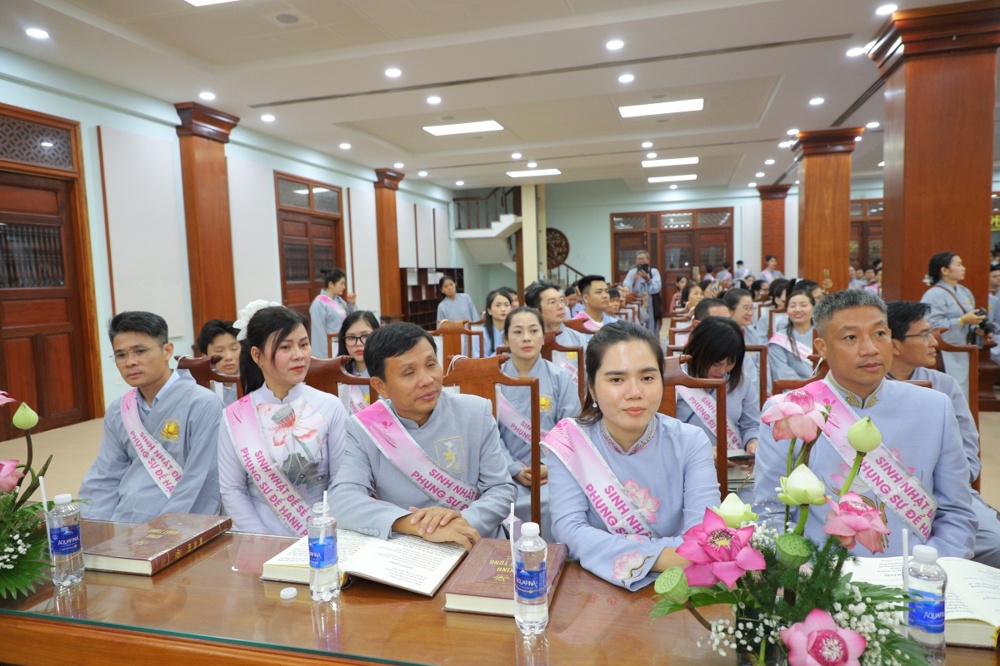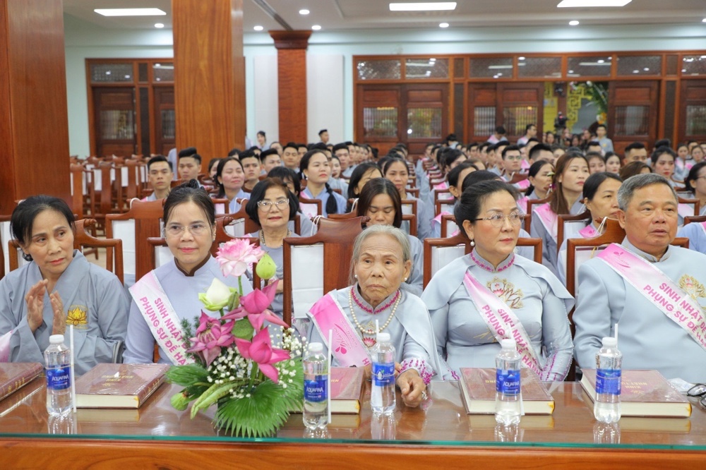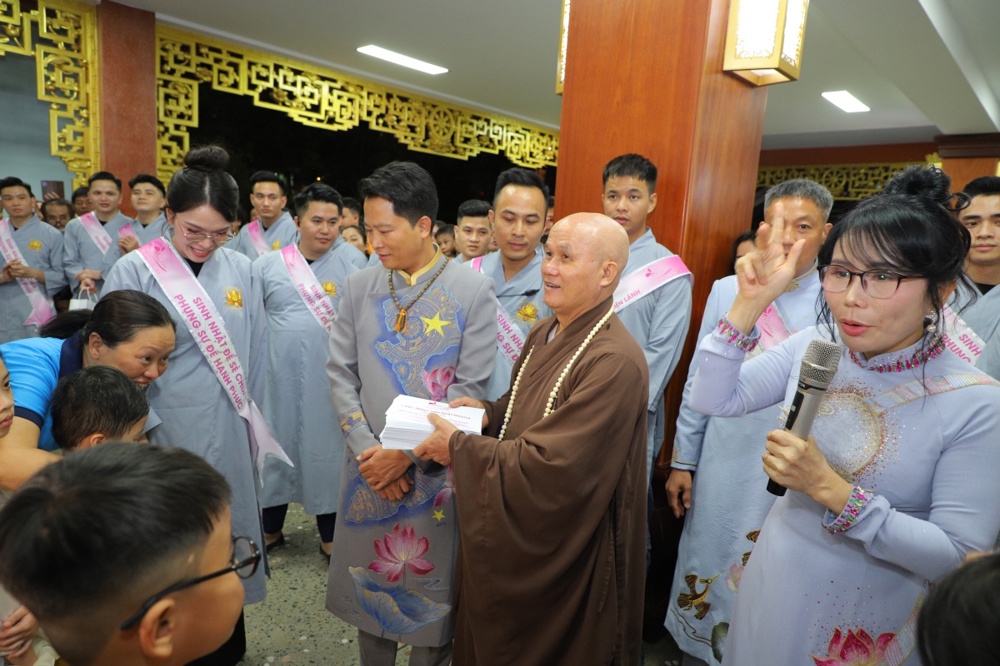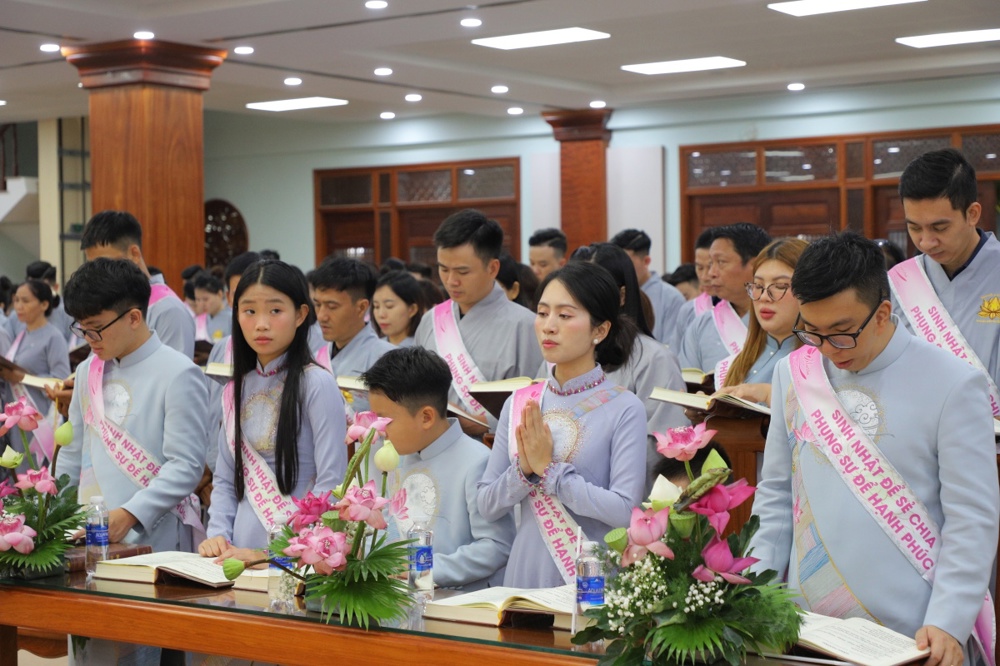 Tại buổi lễ toàn thể Hội chúng cùng chứng kiến nghi thức thổi nến, cắt bánh sinh nhật, mừng Ngày tiếp nối của phật tử Tâm Hương - Phan Thị Mai trong khoảnh khắc thiêng liêng và đầy ý nghĩa.