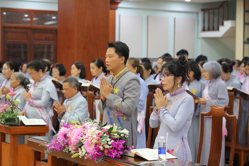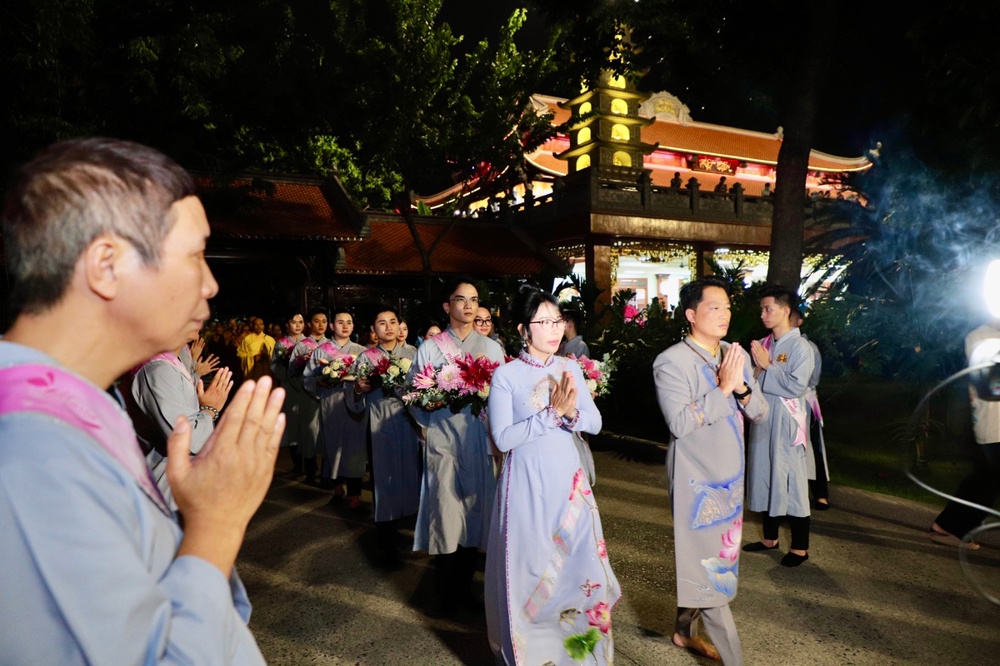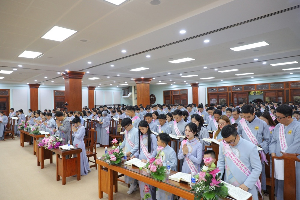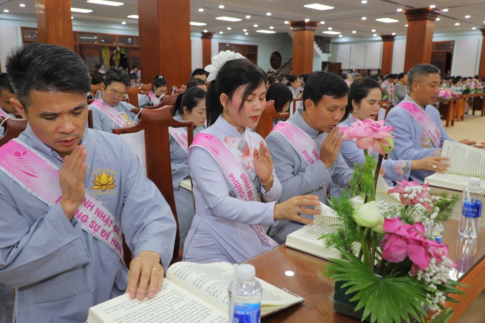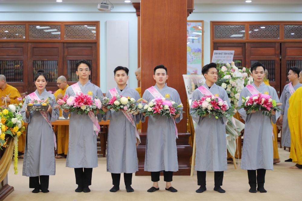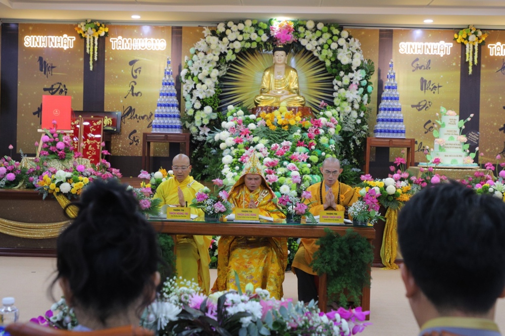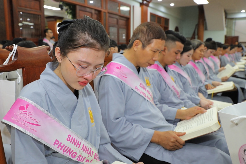 Tại buổi lễ toàn thể Hội chúng cùng chứng kiến nghi thức thổi nến, cắt bánh sinh nhật, mừng Ngày tiếp nối của phật tử Tâm Hương - Phan Thị Mai trong khoảnh khắc thiêng liêng và đầy ý nghĩa.
