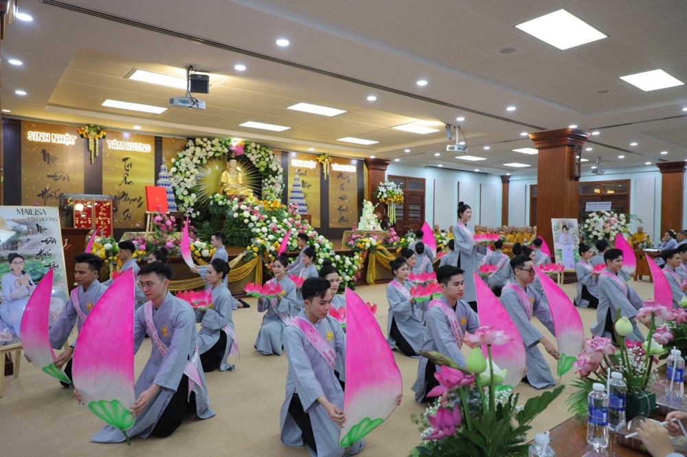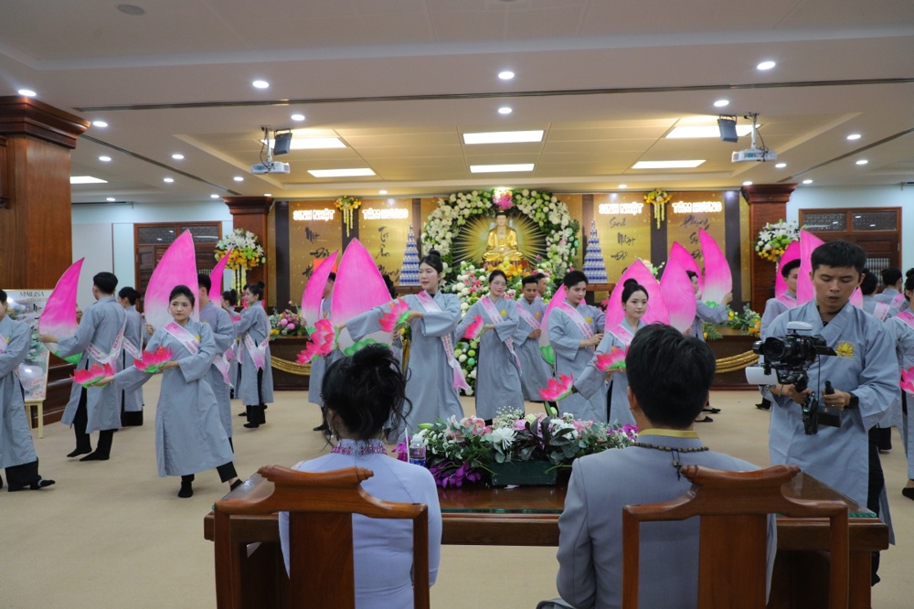 Mở đầu toàn thể hội chúng được thưởng thức chương trình Văn nghệ đặc sắc chào mừng với tiết mục vũ khúc “Tán Thán Phật A Di Đà” do tập thể nhân viên Mailisa trình diễn