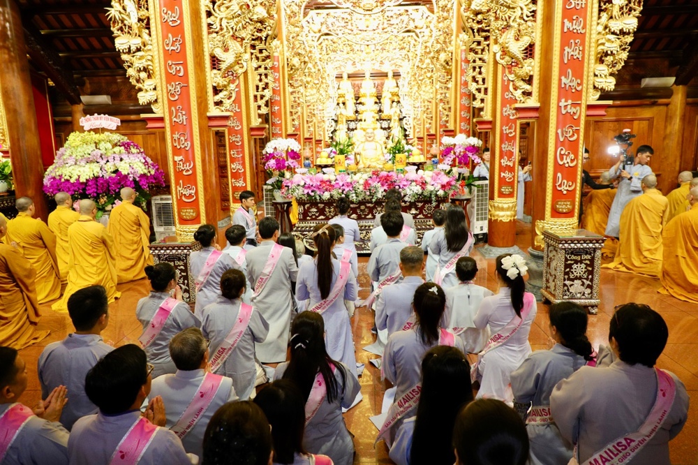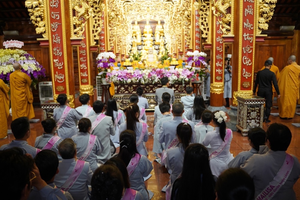 Tại buổi lễ Phật tử Phan Thị Mai – pháp danh Tâm Hương – cúi đầu đảnh lễ tri ân mẹ hiền, cùng song thân bên chồng, những đấng sinh thành đã dưỡng dục, chở che và dành trọn tình yêu thương cho Phật tử Tâm Hương trong suốt hành trình cuộc đời.