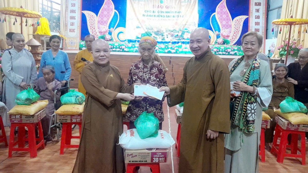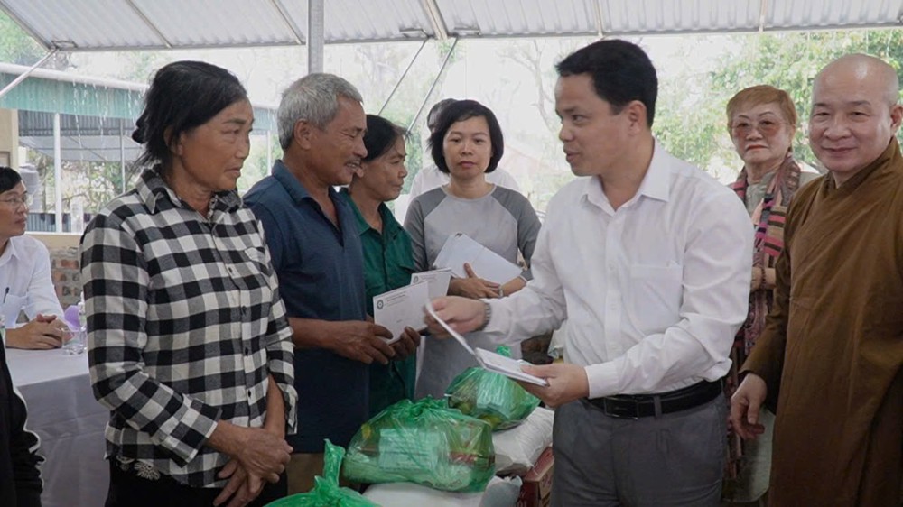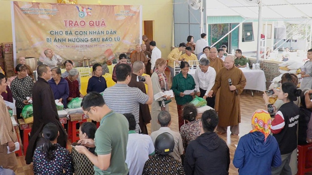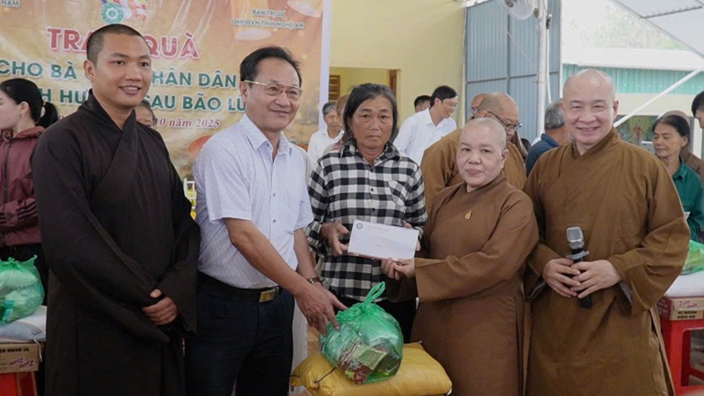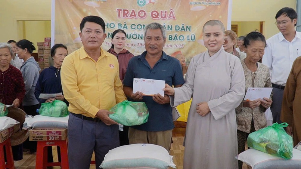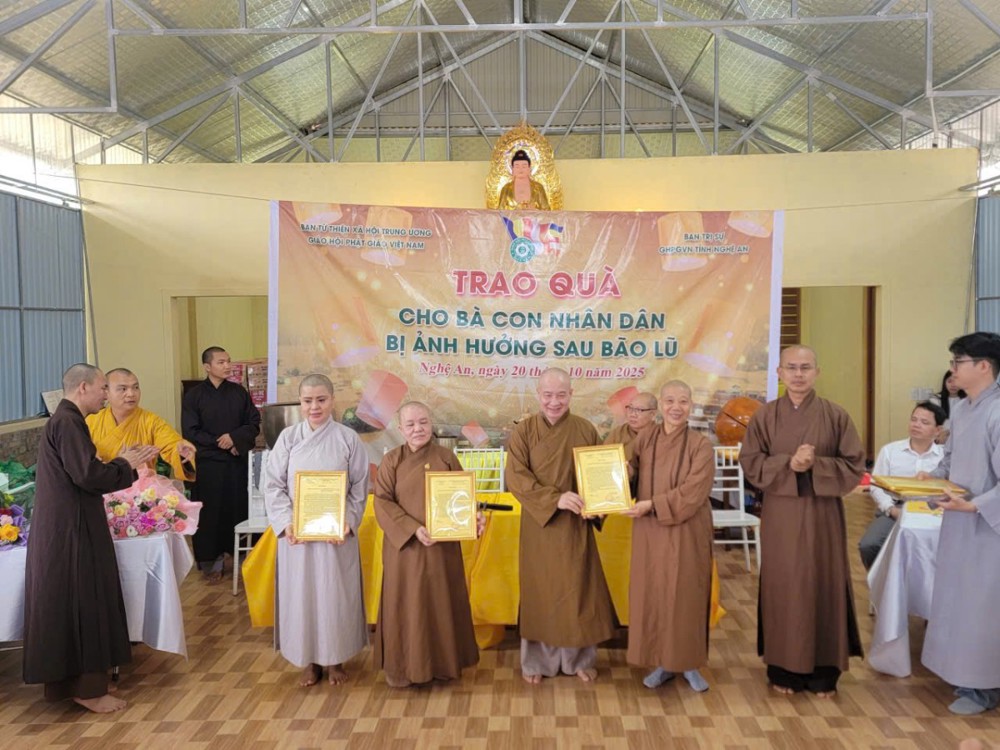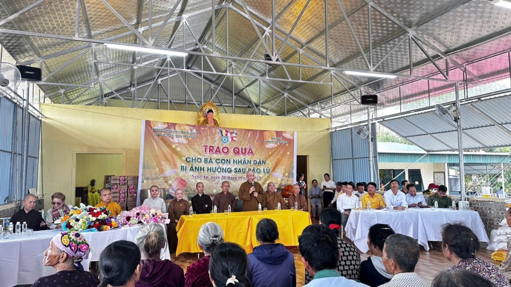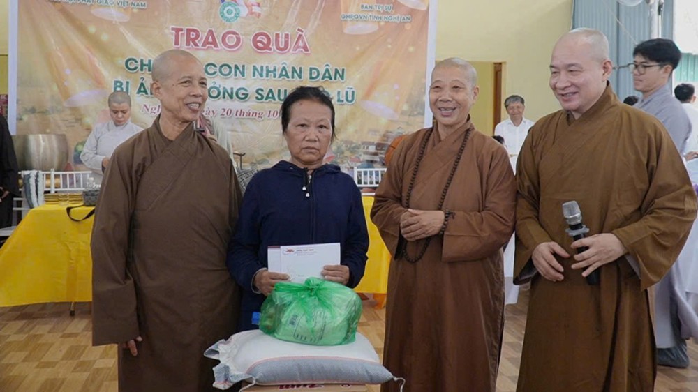 Phát biểu tại buổi lễ, Đại đức Thích Trí Huệ cho biết: “Thời gian qua, Nghệ An liên tiếp chịu thiên tai nghiêm trọng: bão chồng bão, lũ chồng lũ, gây thiệt hại lớn về tài sản, ảnh hưởng nặng nề đến đời sống người dân. Trước tình cảnh đó, với tinh thần từ bi cứu khổ của người con Phật, Ban Từ thiện xã hội Trung ương cùng Ban Trị sự tỉnh đã vận động, kêu gọi và tổ chức chương trình trao tặng 507 suất quà, trị giá gần 1 tỷ đồng nhằm hỗ trợ người dân vượt qua khó khăn”.