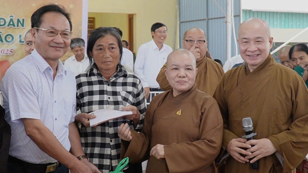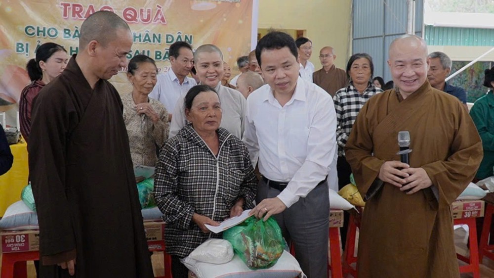 Đại diện chính quyền ông Phan Sỹ Cường ghi nhận và đánh giá cao những nghĩa cử kịp thời, thiết thực từ Giáo hội Phật giáo. Ông nhấn mạnh vai trò của Phật giáo trong việc lan tỏa tinh thần đoàn kết, sẻ chia, thể hiện truyền thống “lá lành đùm lá rách” của dân tộc, đồng thời gửi lời tri ân tới quý Ni trưởng, Ni sư, chư Tăng Ni, Phật tử và các nhà hảo tâm.