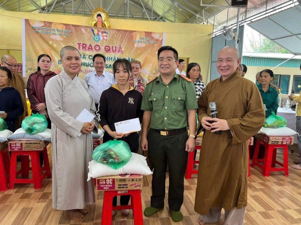 PSO - Ngày 20/10, hưởng ứng Thông bạch của Trung ương Giáo hội Phật giáo Việt Nam và lời kêu gọi của Ủy ban Trung ương Mặt trận Tổ quốc Việt Nam, Ban Từ thiện xã hội Trung ương GHPGVN phối hợp cùng Ban Trị sự GHPGVN tỉnh Nghệ An đã tổ chức chương trình trao quà hỗ trợ người dân chịu ảnh hưởng nặng nề bởi mưa bão, lũ lụt tại một số địa phương trong tỉnh.