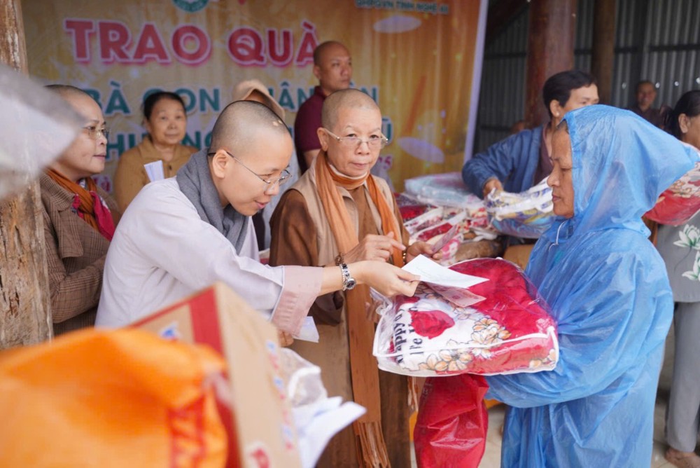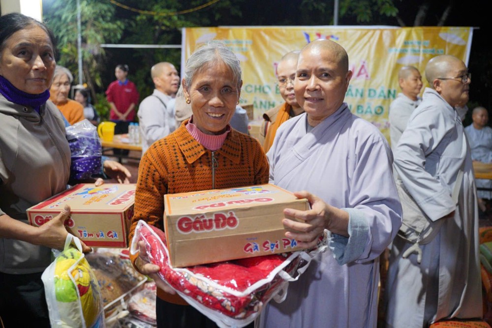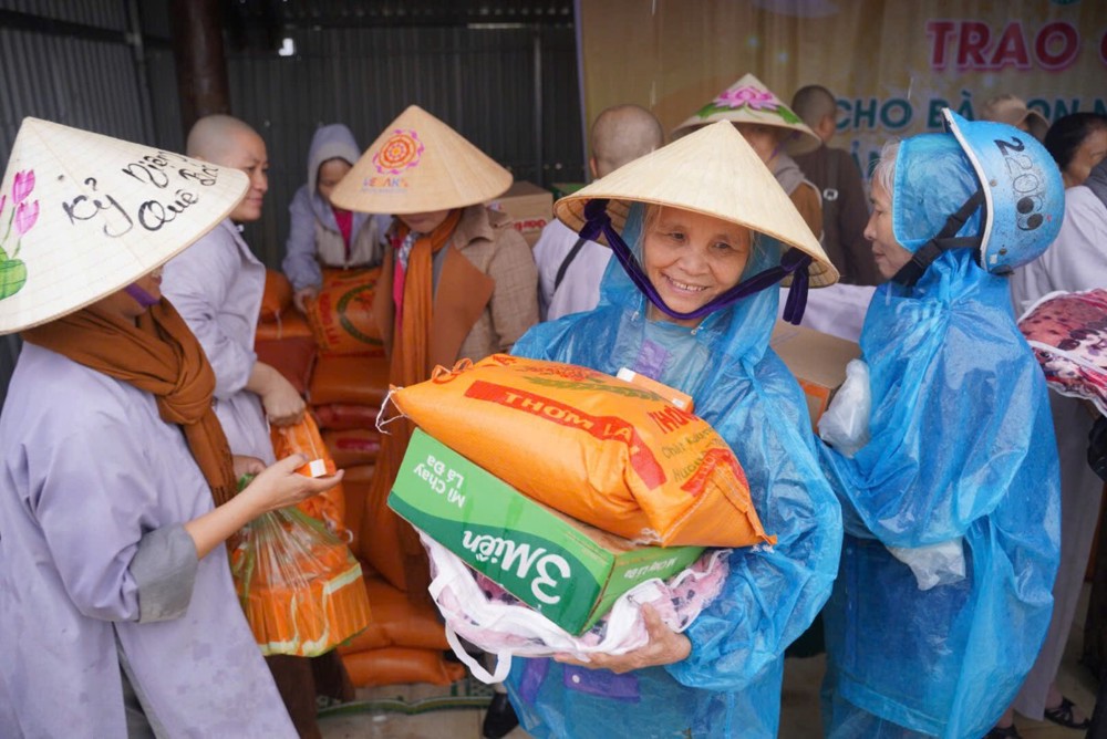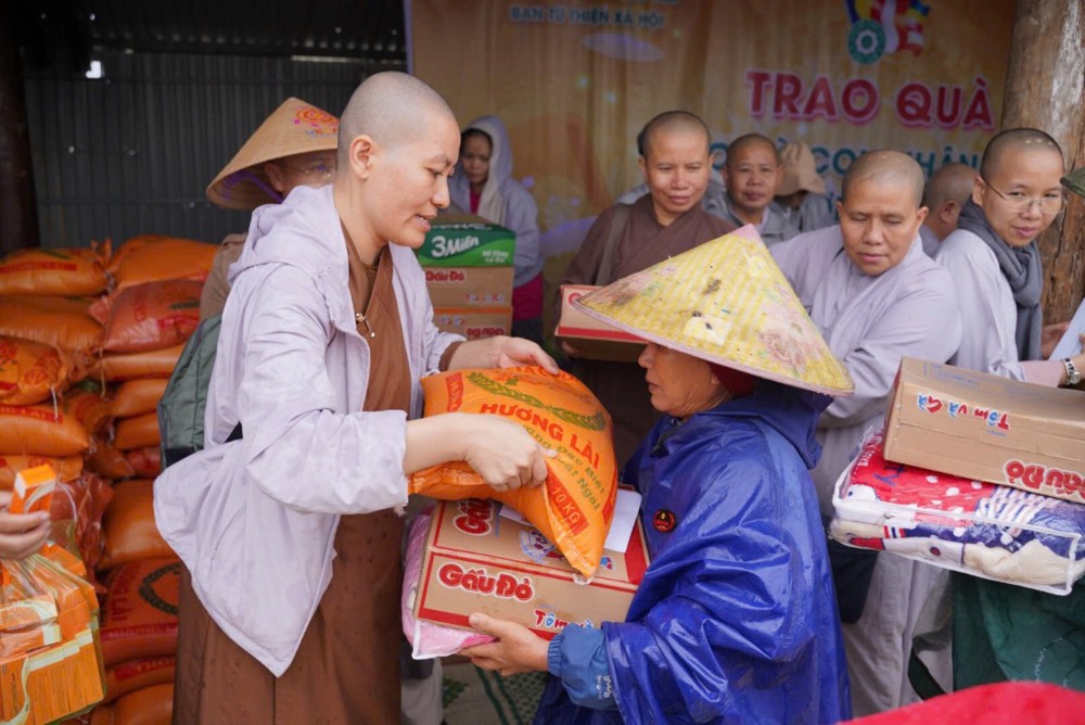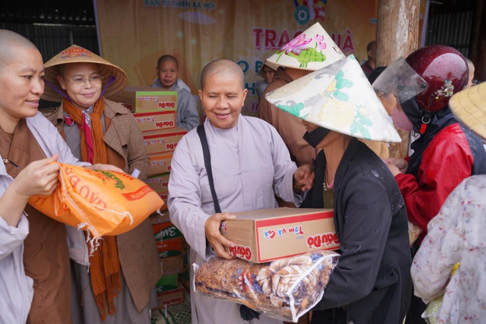Ni sư nhấn mạnh, hoạt động từ thiện không chỉ là sự sẻ chia vật chất, mà còn là cách gieo duyên lành, giúp mọi người cảm nhận được tình người, niềm tin và hy vọng giữa cuộc đời. Qua đó, Ni sư mong rằng những phần quà nhỏ bé hôm nay sẽ là nguồn động viên tinh thần, giúp bà con vững lòng vượt qua khó khăn, ổn định cuộc sống và sớm xây dựng lại nhà cửa, chùa chiền sau thiên tai.