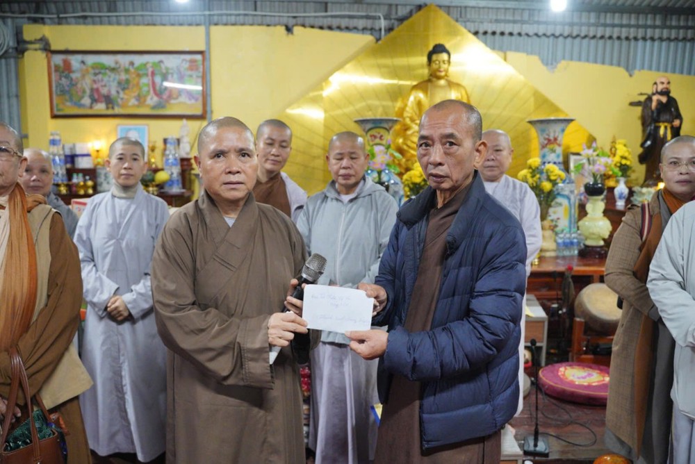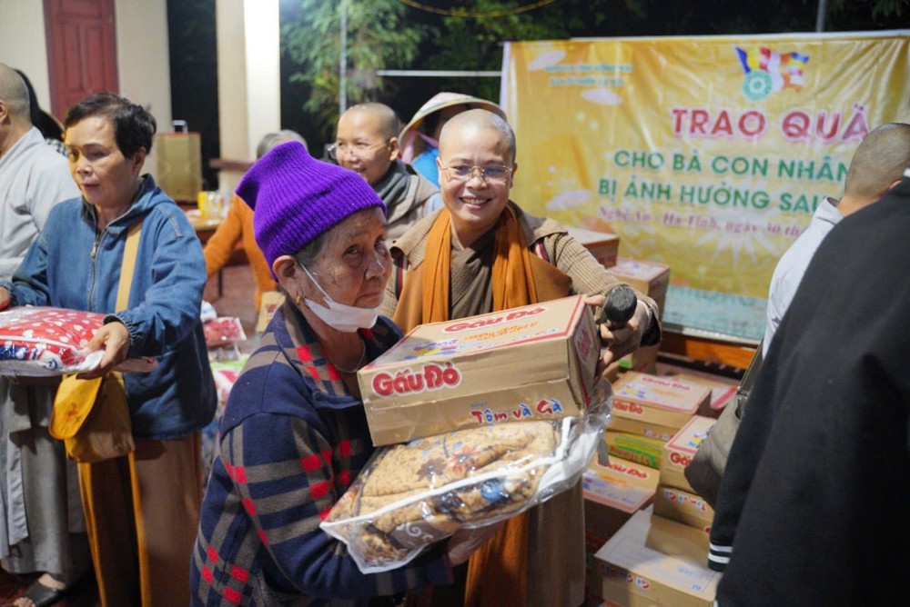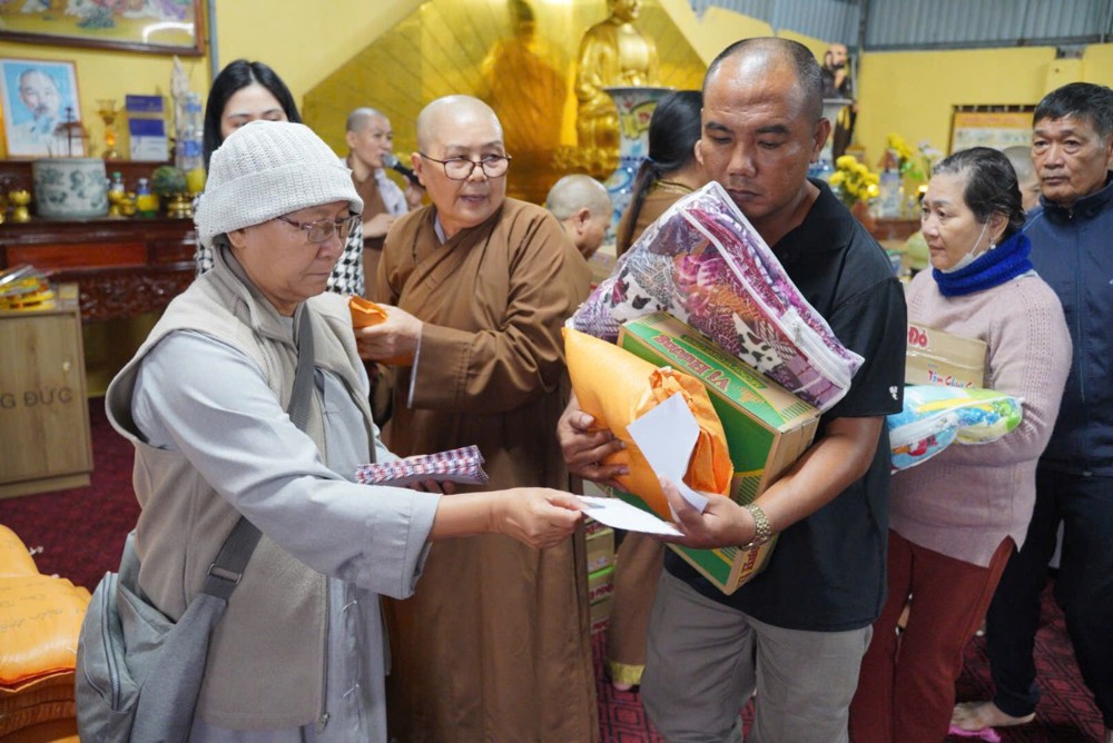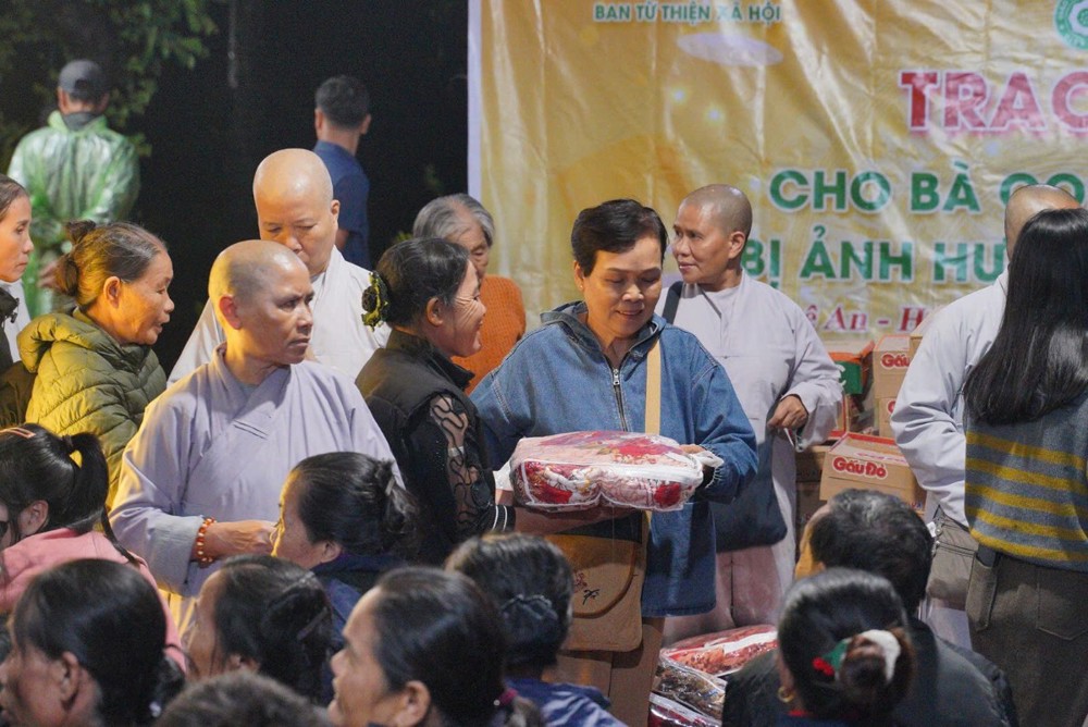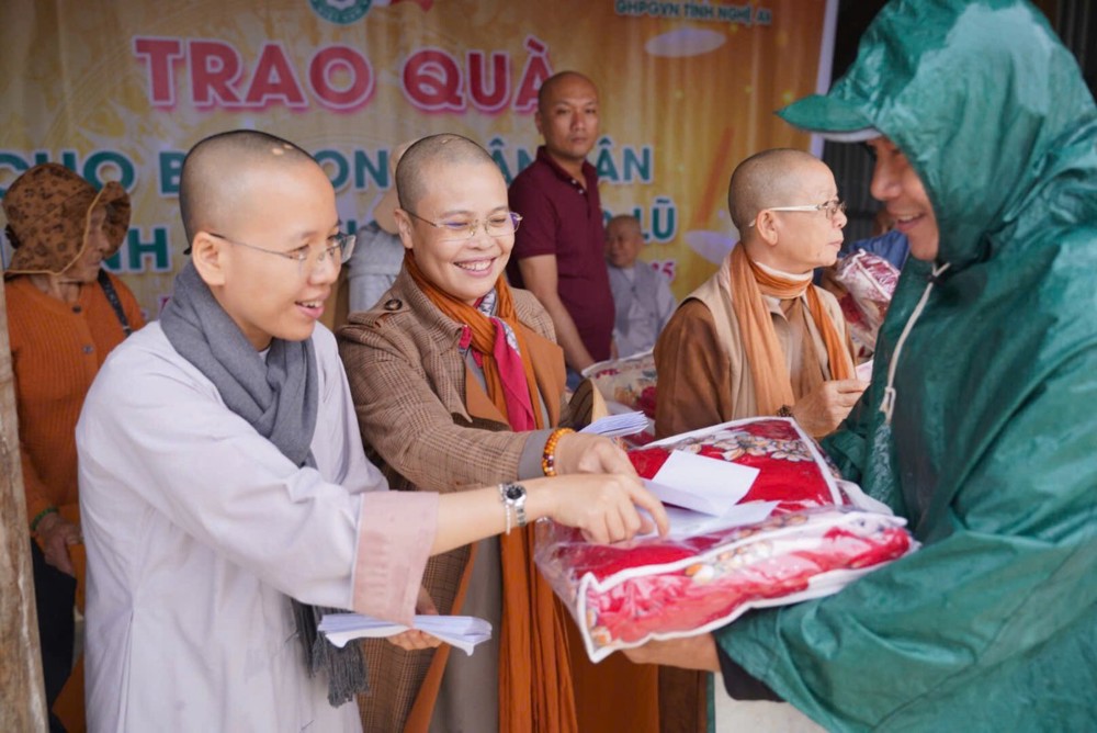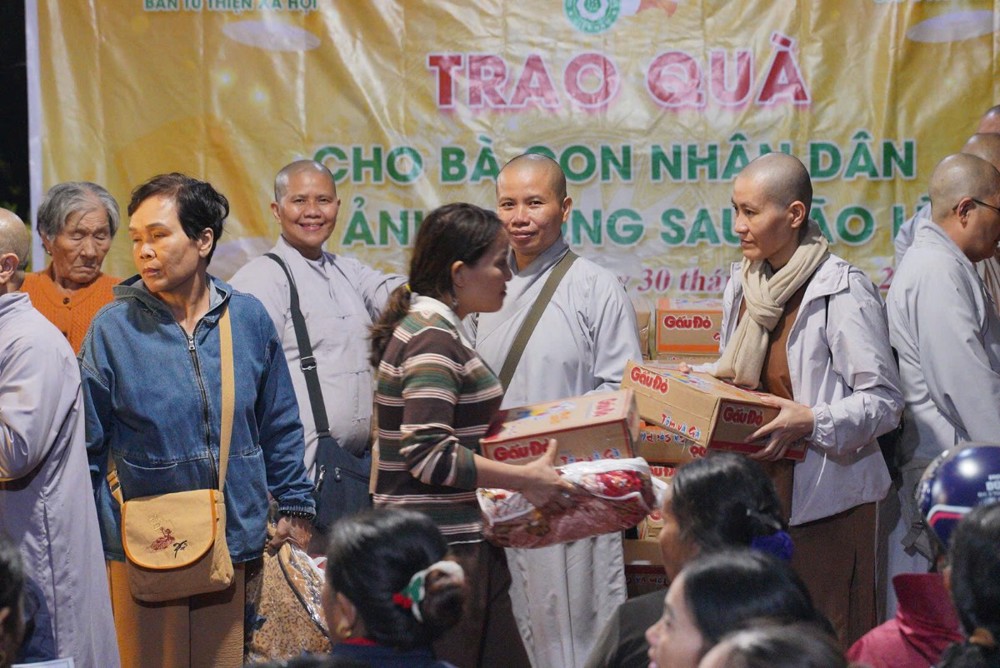 Ni sư nhấn mạnh, hoạt động từ thiện không chỉ là sự sẻ chia vật chất, mà còn là cách gieo duyên lành, giúp mọi người cảm nhận được tình người, niềm tin và hy vọng giữa cuộc đời. Qua đó, Ni sư mong rằng những phần quà nhỏ bé hôm nay sẽ là nguồn động viên tinh thần, giúp bà con vững lòng vượt qua khó khăn, ổn định cuộc sống và sớm xây dựng lại nhà cửa, chùa chiền sau thiên tai.