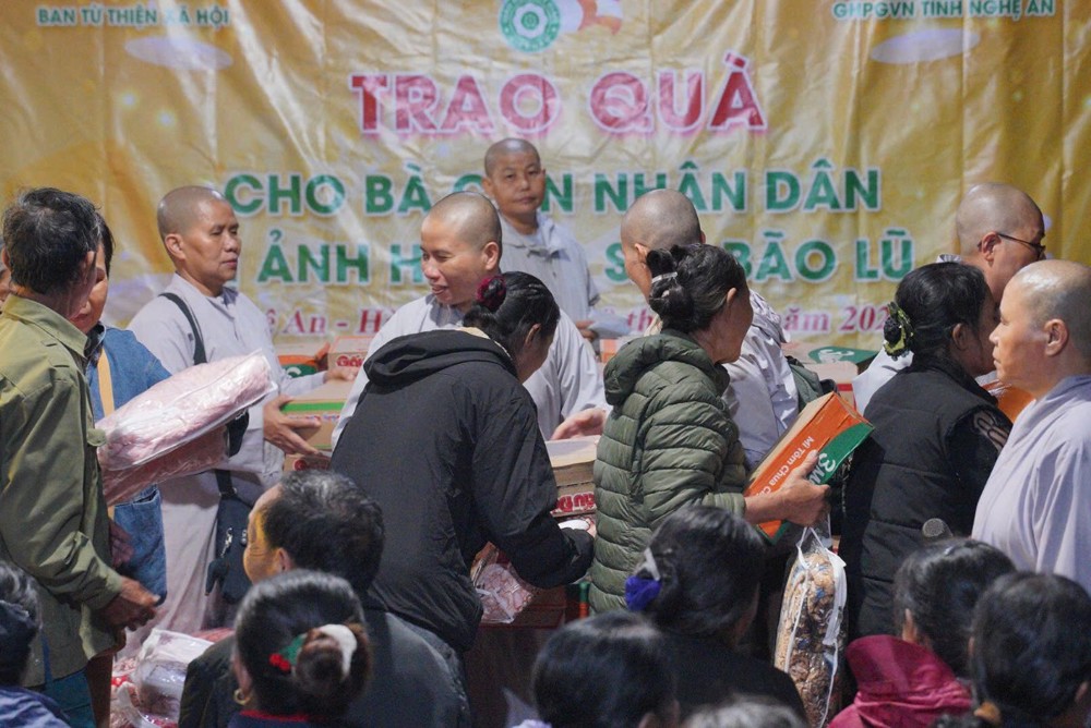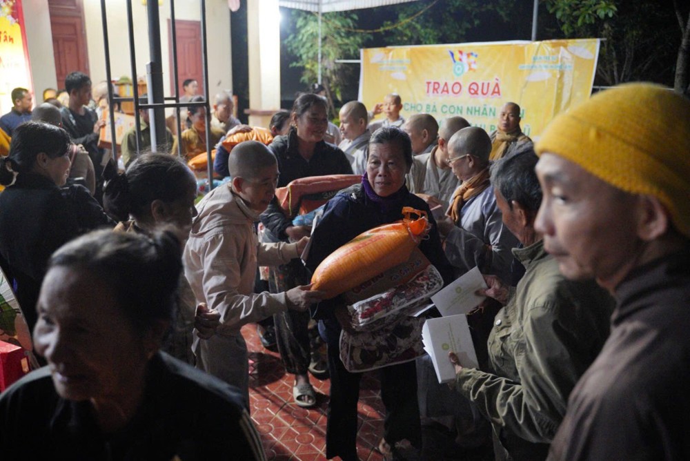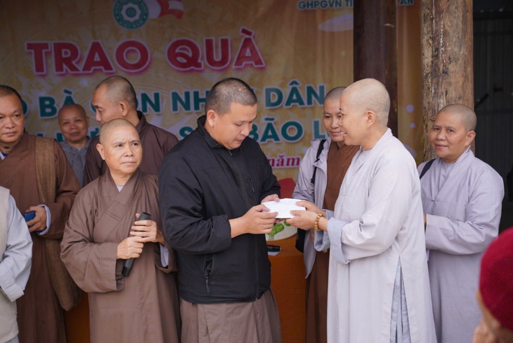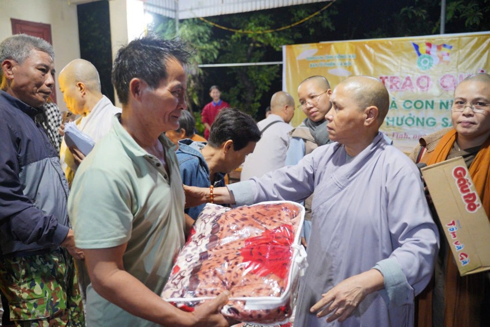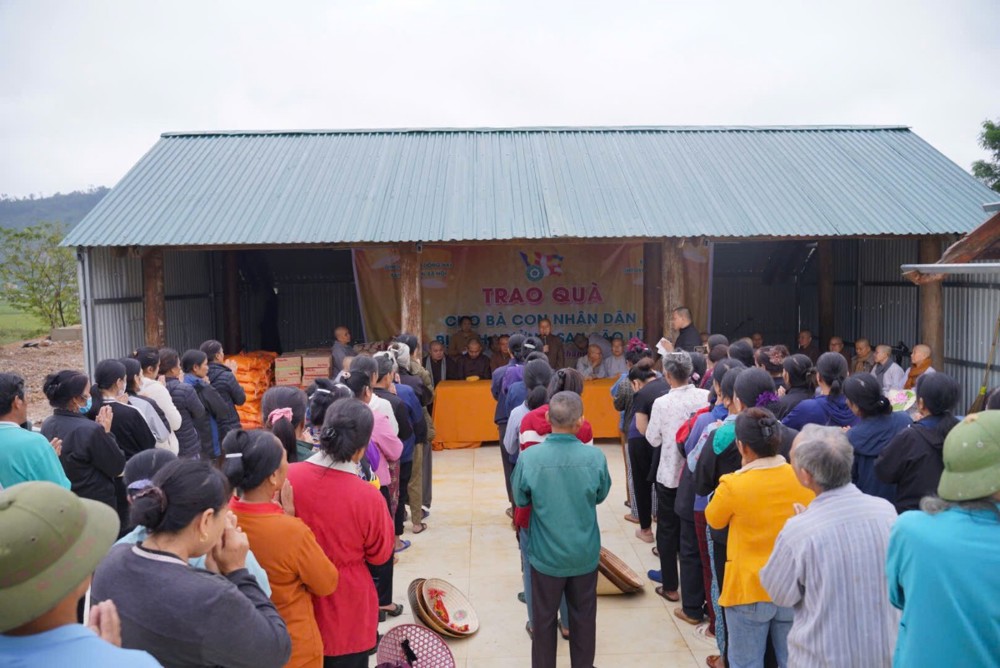 Tại đây, đoàn đã trao tặng 500 phần quà nghĩa tình đến bà con khó khăn, góp phần xoa dịu nỗi đau, tiếp thêm nghị lực để cùng nhau vượt qua giai đoạn khó khăn và hướng tới cuộc sống an lành, tươi sáng hơn. Bên cạnh đó, đoàn còn trao tịnh tài cúng dường đến chư Tôn đức trụ trì tại các ngôi chùa bị hư hại nghiêm trọng, nhằm hỗ trợ công tác trùng tu, tái thiết lại cơ sở tự viện.