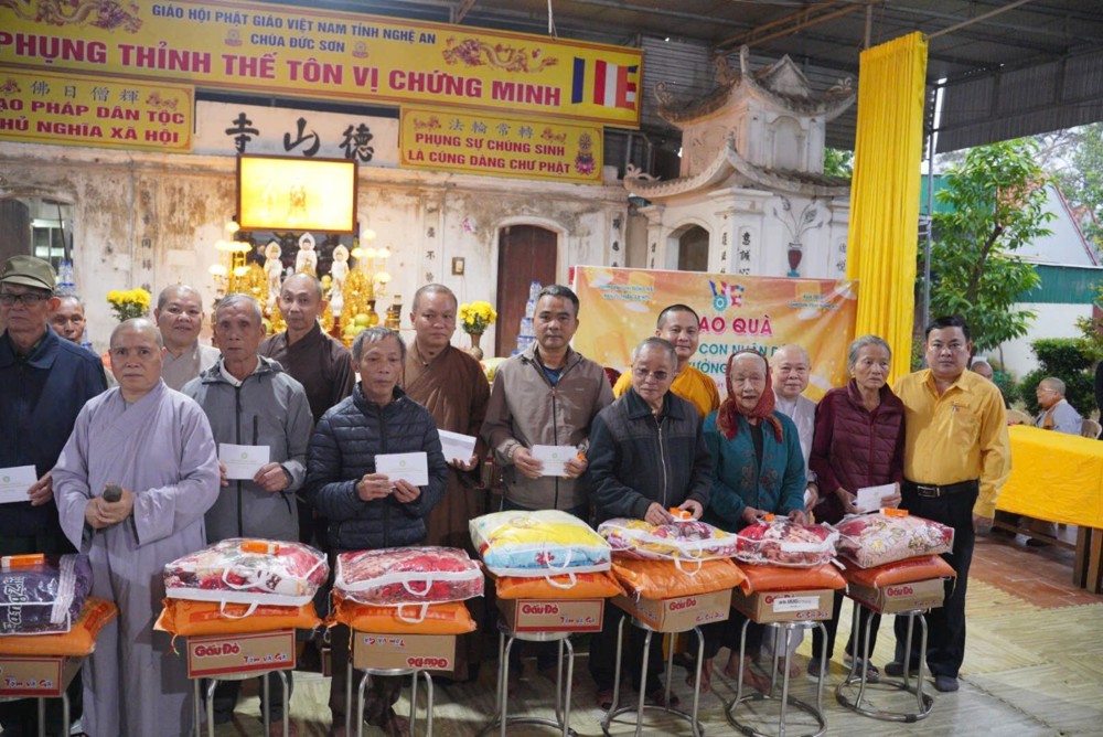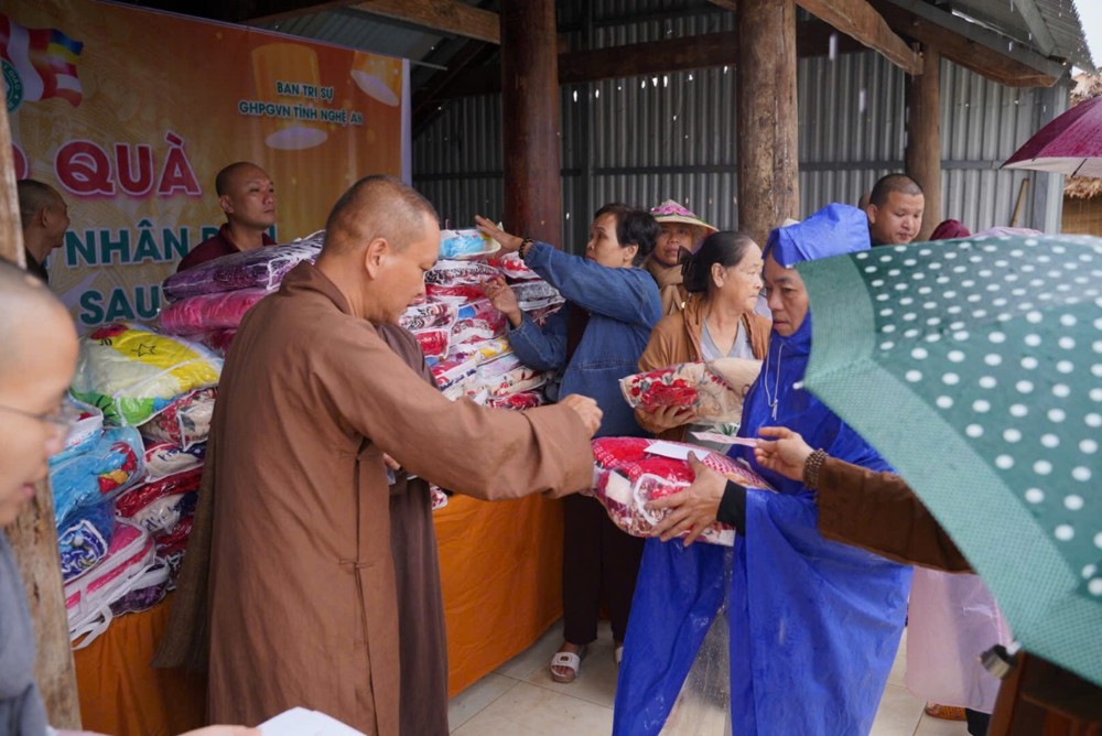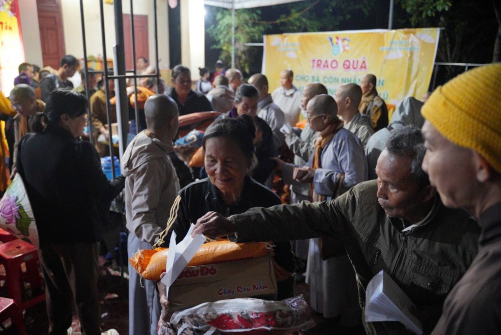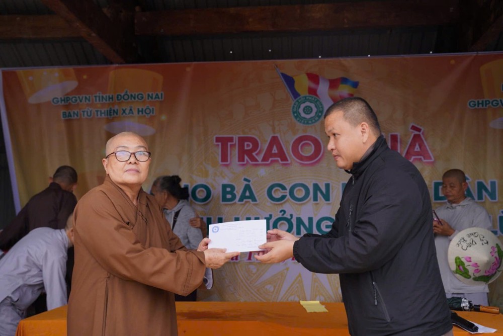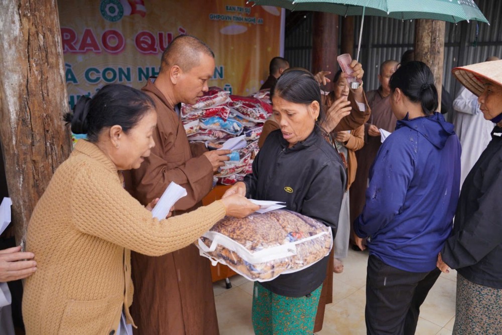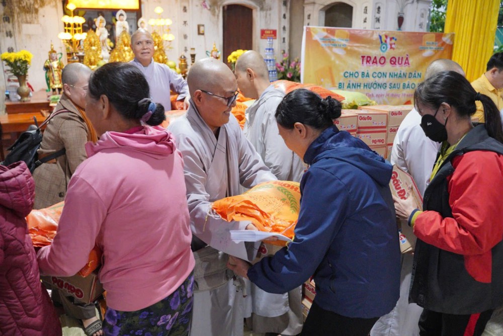 Tại đây, đoàn đã trao tặng 500 phần quà nghĩa tình đến bà con khó khăn, góp phần xoa dịu nỗi đau, tiếp thêm nghị lực để cùng nhau vượt qua giai đoạn khó khăn và hướng tới cuộc sống an lành, tươi sáng hơn. Bên cạnh đó, đoàn còn trao tịnh tài cúng dường đến chư Tôn đức trụ trì tại các ngôi chùa bị hư hại nghiêm trọng, nhằm hỗ trợ công tác trùng tu, tái thiết lại cơ sở tự viện.