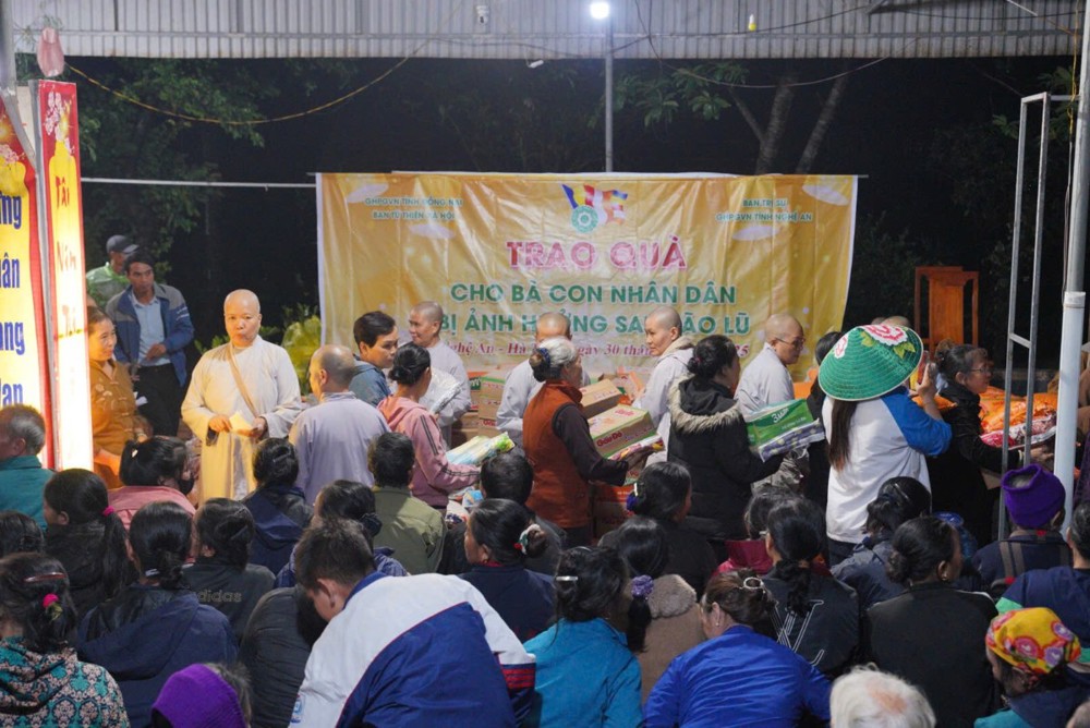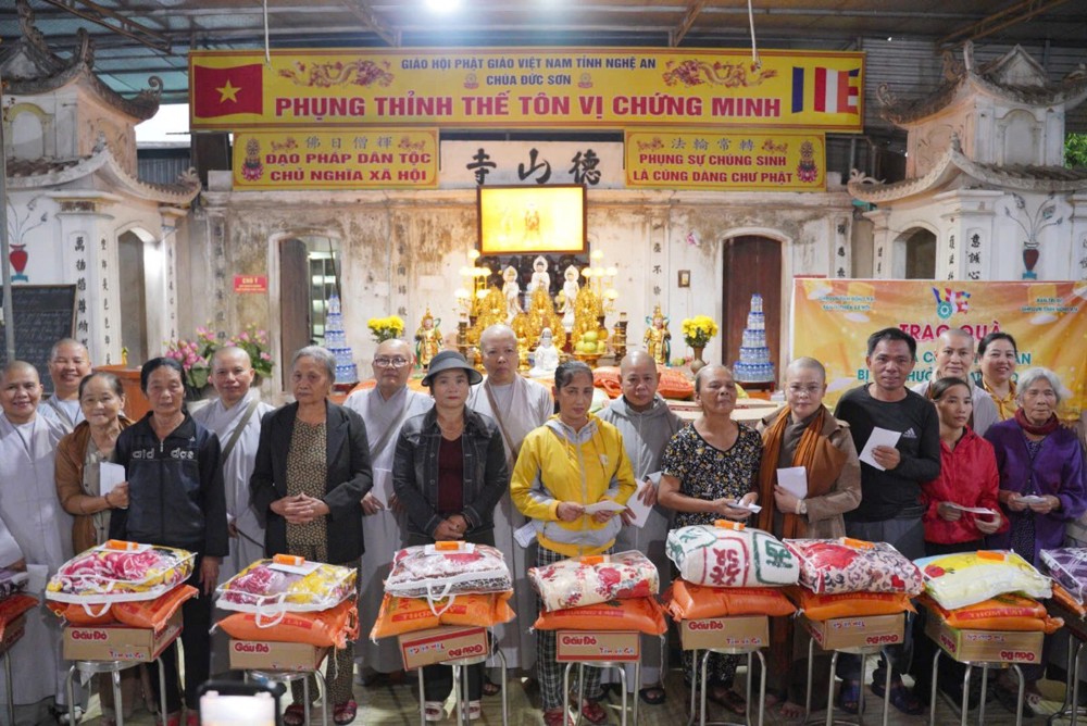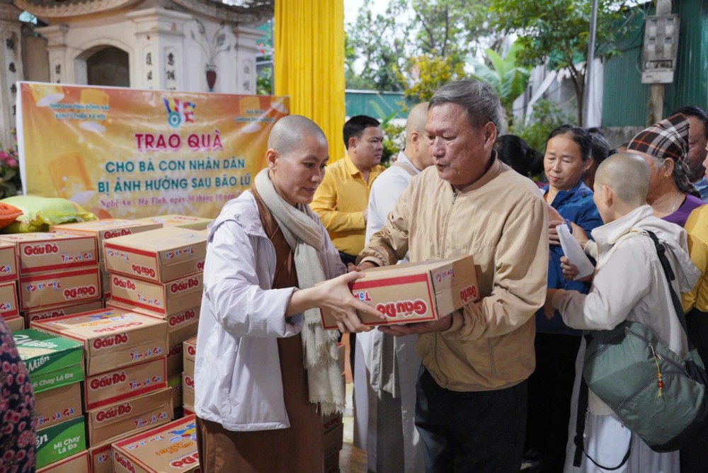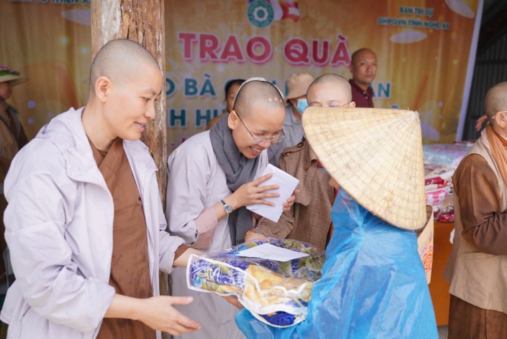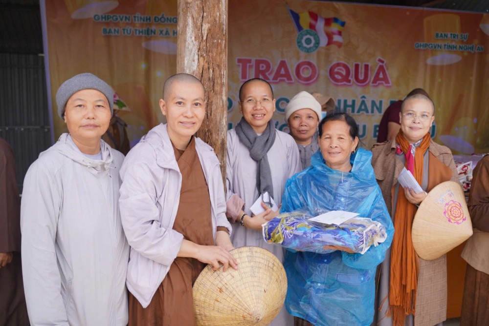 PSO - Trong hai ngày 30 - 31/10/2025, đoàn Ban Từ thiện xã hội GHPGVN tỉnh Đồng Nai do Ni sư Thích Nữ Như Hiền - Phó BTS, Trưởng ban Từ thiện xã hội GHPGVN tỉnh, Phó Thường trực Phân ban Ni giới tỉnh Đồng Nai, làm trưởng đoàn, đã trao những phần quà cho bà con bị thiên tai lũ lụt tại 4 địa điểm: chùa Đức Sơn (xã Vân Diên), chùa Hộ Quốc (xã Nghi Xuân) , chùa Tiên Linh (xã Hưng Nguyên), chùa Lối (xã Nam Đàn) thuộc tỉnh Nghệ An.