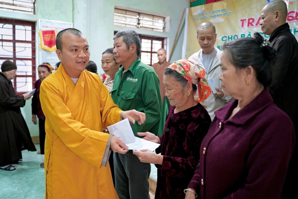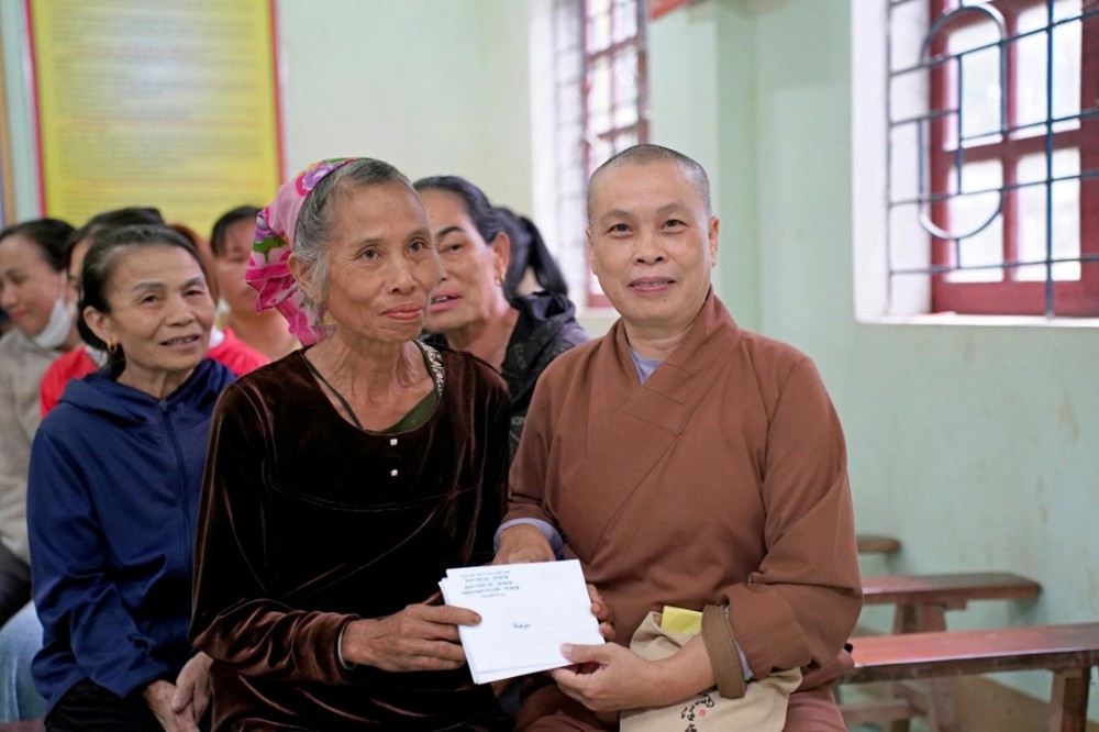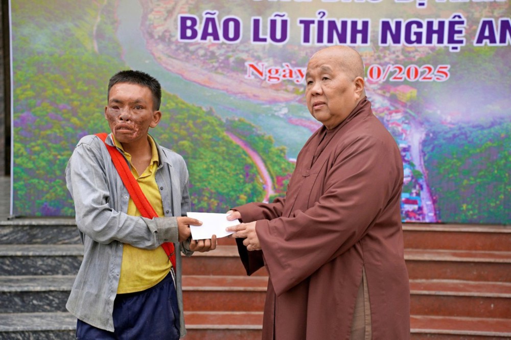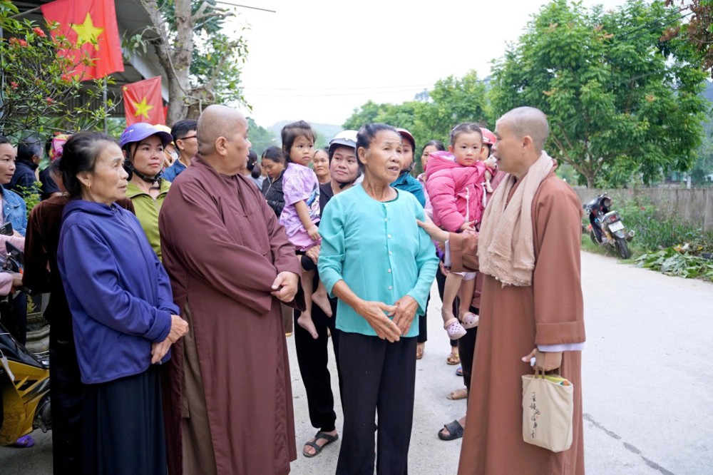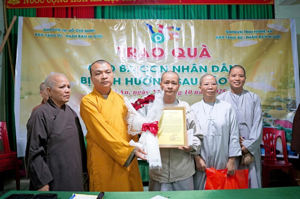 Tại buổi trao quà, Ni trưởng Thích Nữ Từ Nhẫn đã ân cần thăm hỏi, động viên bà con cố gắng vượt qua những mất mát, sớm ổn định cuộc sống và khôi phục sản xuất. Ni trưởng cũng gửi lời tri ân đến Ban Trị sự GHPGVN tỉnh Nghệ An và chính quyền địa phương đã tạo điều kiện thuận lợi để đoàn có thể trực tiếp đến thăm hỏi và trao tận tay những phần quà nghĩa tình đến người dân.