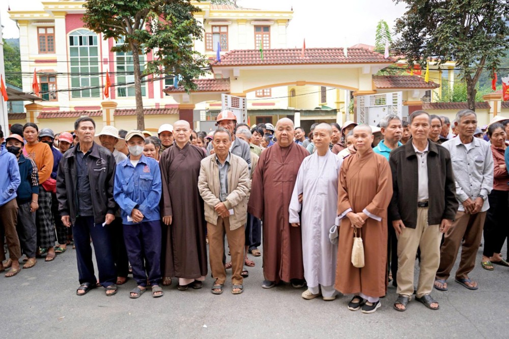 Tiếp đoàn có ĐĐ. Thích Minh Hải – Chánh Văn phòng Ban Trị sự GHPGVN tỉnh Nghệ An, cùng chư Tôn đức Tăng Ni, lãnh đạo chính quyền và các ban ngành địa phương.