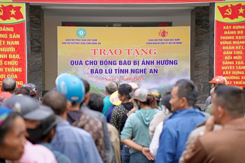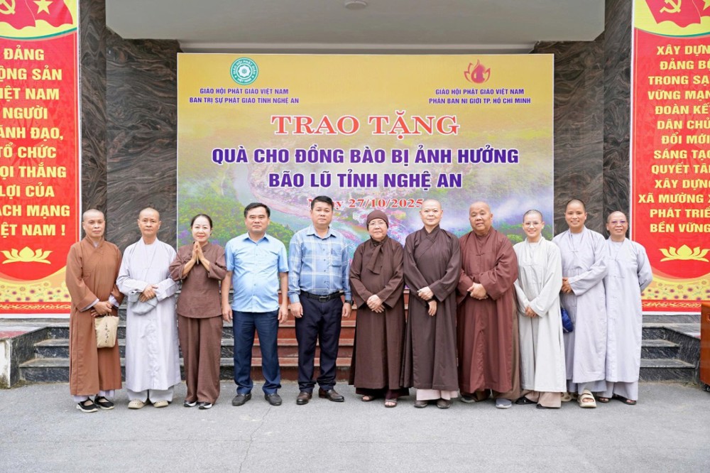 PSO - Ngày 27/10/2025, phái đoàn Phân ban Ni giới Giáo hội Phật giáo Việt Nam TP. Hồ Chí Minh do Ni trưởng Thích Nữ Từ Nhẫn – Phó trưởng PBNG Trung ương, Trưởng Phân ban Ni giới TP.HCM làm trưởng đoàn, đã đến xã Châu Tiến và xã Mường Xén, tỉnh Nghệ An, để tiếp tục hành trình trao gửi những phần quà yêu thương, chia sẻ khó khăn cùng bà con vùng chịu ảnh hưởng nặng nề sau bão số 10 và số 11 vừa qua.