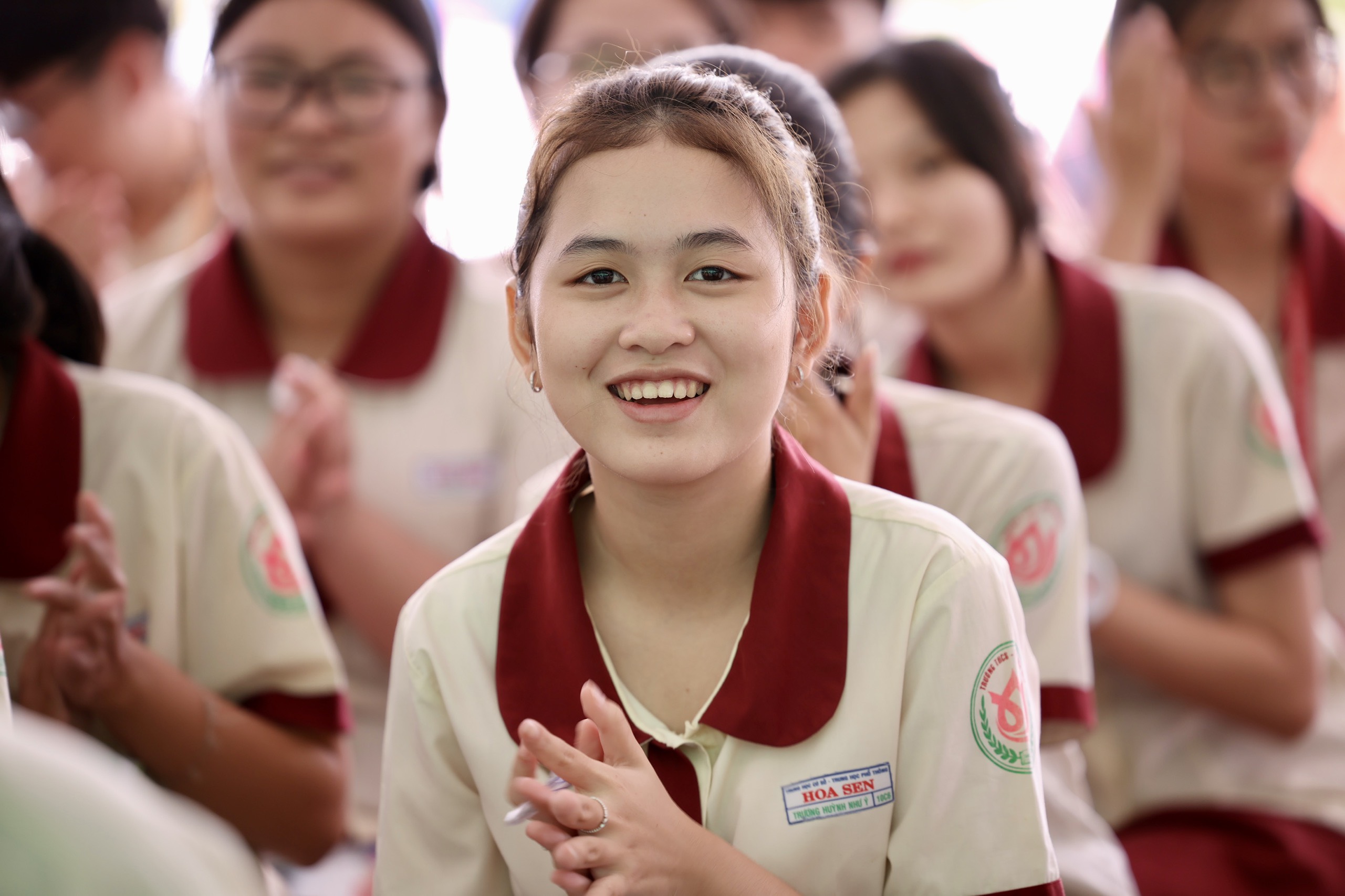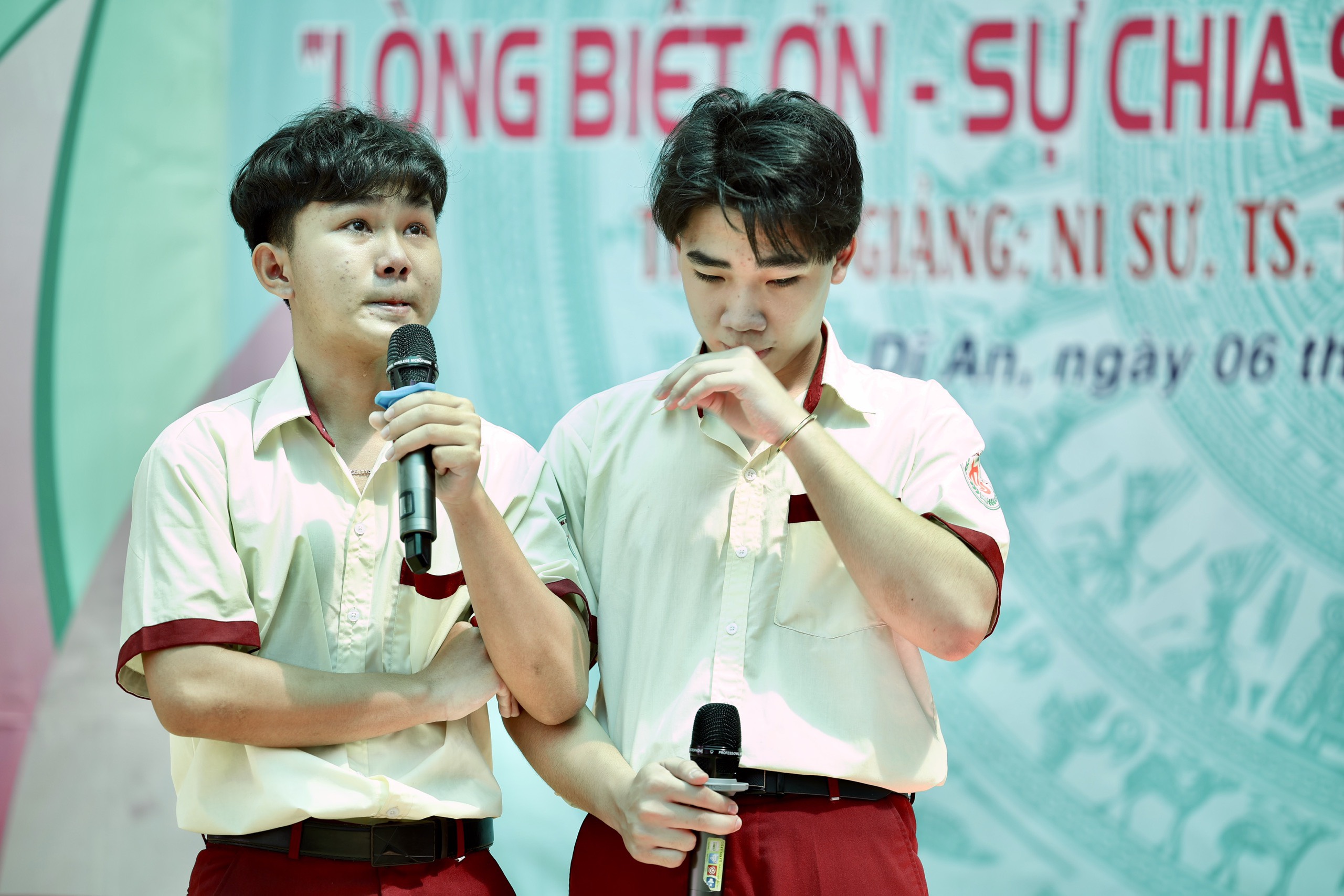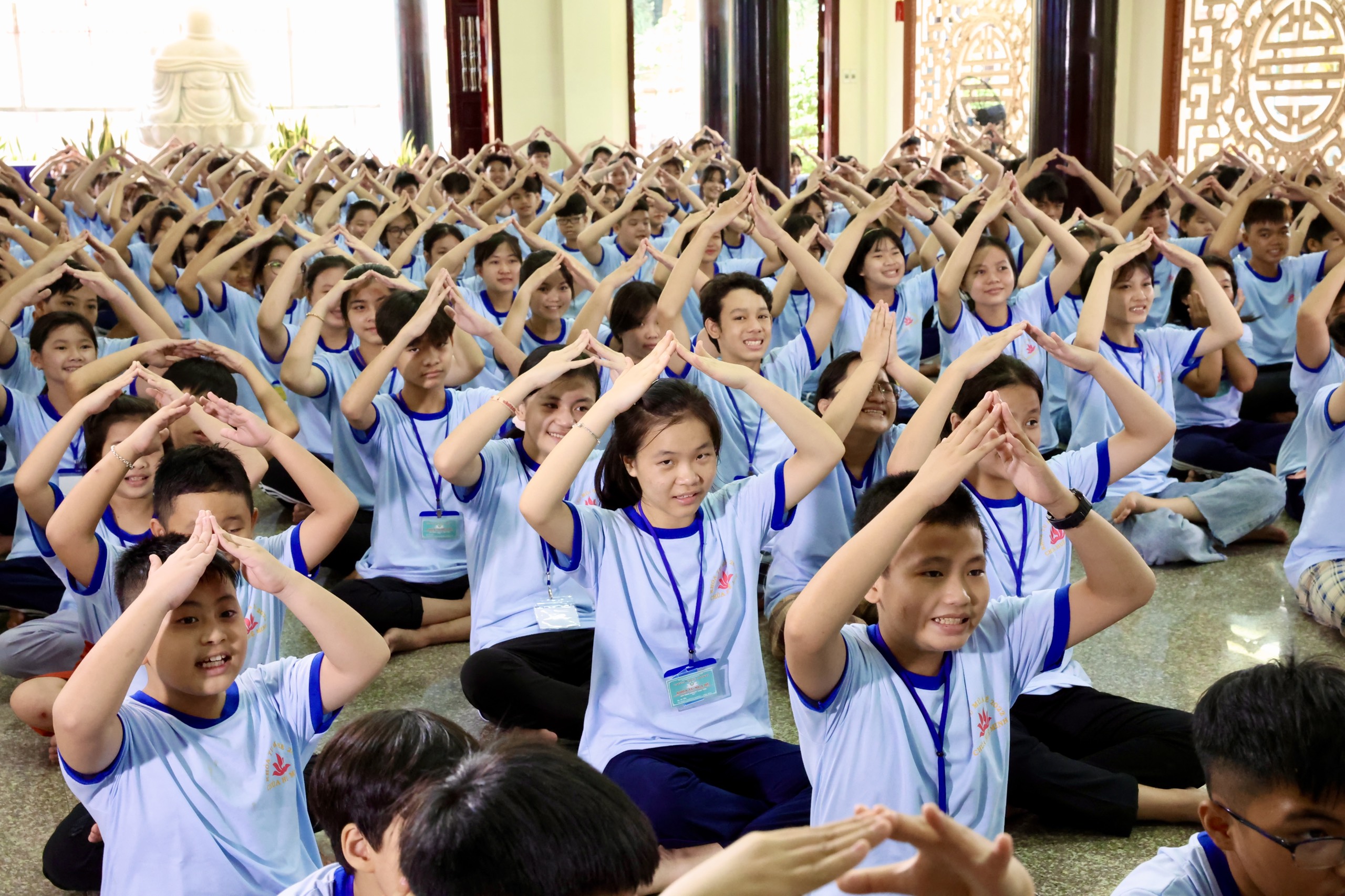 Các em học sinh trường TH và THCS Hoa Sen lắng nghe pháp thoạiVới những câu chuyện cảm động về tình người trong cuộc sống, Ni sư đã nhắc nhở các em không đắm mình vào thế giới ảo của game, mạng xã hội; ý thức về công ơn cha mẹ, ân tình đất nước, thầy cô và cả pháp giới chúng sinh mà tu dưỡng đạo đức, hình thành nhân cách tốt để xứng đáng là con ngoan trò giỏi, sớm nên người hữu ích cho gia đình và xã hội.