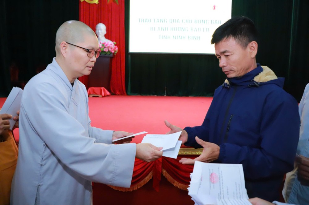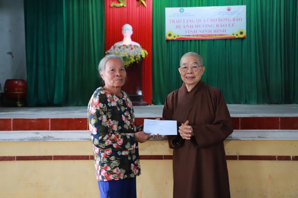 PSO – Những ngày cuối tháng 9/2025, cơn bão số 10 (Bualoi) đã gây mưa lớn, ngập úng và thiệt hại nặng nề tại nhiều tỉnh miền Bắc, trong đó có Ninh Bình. Nhằm chia sẻ khó khăn và động viên tinh thần người dân vùng bão lũ, ngày 25/10/2025, Phân ban Ni giới Trung ương do Ni trưởng Thích Nữ Nhật Khương – Ủy viên Thường trực HĐTS, Trưởng Phân ban Ni giới Trung ương, làm trưởng đoàn, đã đến tỉnh Ninh Bình trao tặng hơn 500 phần quà hỗ trợ đến bà con chịu ảnh hưởng bởi thiên tai.