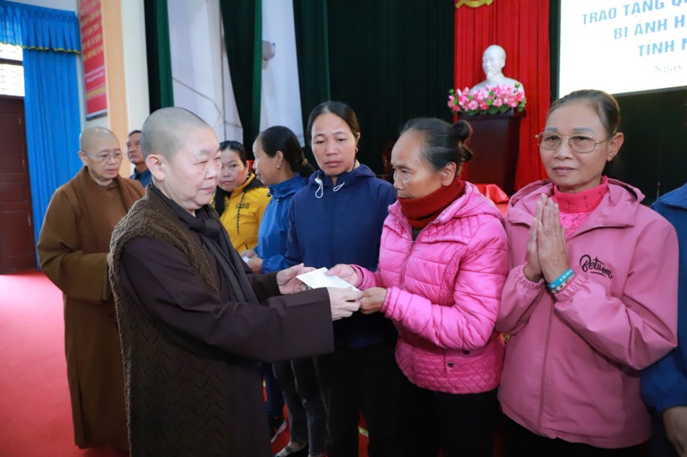 Tại các điểm trao quà, Ni trưởng Thích nữ Nhật Khương và Ni trưởng Thích Nữ Như Như đã gửi lời thăm hỏi, động viên bà con vượt qua khó khăn, sớm ổn định cuộc sống. Ni trưởng nhấn mạnh, hoạt động thiện nguyện này xuất phát từ tinh thần từ bi của đạo Phật và truyền thống “lá lành đùm lá rách” của dân tộc Việt Nam, mong rằng mỗi phần quà sẽ góp phần xoa dịu nỗi đau, mang đến niềm an ủi và niềm tin trong cuộc sống. Tổng kinh phí cho chuyến từ thiện lần này là 570 triệu đồng, do Phân ban Ni giới Trung ương, chư Ni, Phật tử và các mạnh thường quân phát tâm đóng góp.