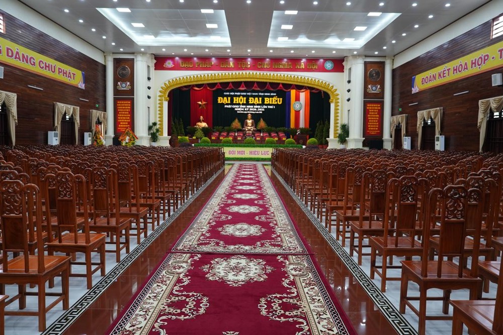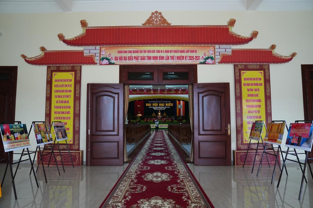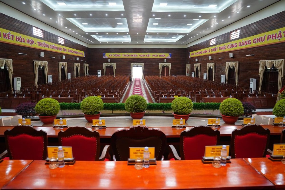 Khu vực đón tiếp và Hội trường nơi diễn ra Đại hội được sắp xếp trang nghiêm, sẵn sàng cho giờ phút trọng đại – nơi hội tụ trí tuệ, tâm huyết của chư Tôn đức Tăng Ni và quý đại biểu, nhằm định hướng cho sự phát triển của Phật giáo tỉnh nhà trong chặng đường mới.