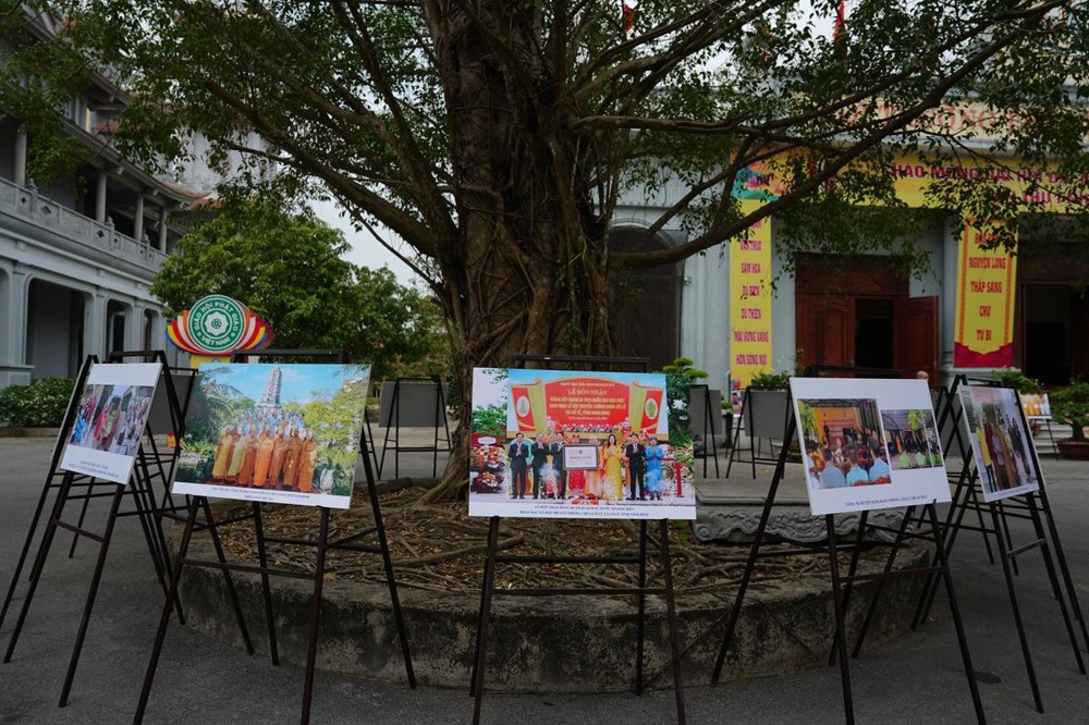 Bước vào khuôn viên Thiền viện Trúc Lâm Thiên Trường, ai nấy đều có thể dễ dàng cảm nhận được không khí chuẩn bị chu đáo và đầy tâm huyết của chư Tôn đức trong Ban tổ chức. Không gian trưng bày triển lãm ảnh được bố trí trang trọng, tái hiện sinh động những dấu ấn nổi bật của Phật giáo tỉnh nhà trong thời gian qua: từ công tác hoằng pháp, giáo dục Tăng Ni, đến các hoạt động từ thiện xã hội, an sinh cộng đồng. Mỗi khung hình là một câu chuyện, mỗi khoảnh khắc là một minh chứng cho tinh thần “phụng sự chúng sinh là thiết thực cúng dàng chư Phật”.
