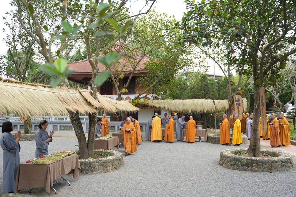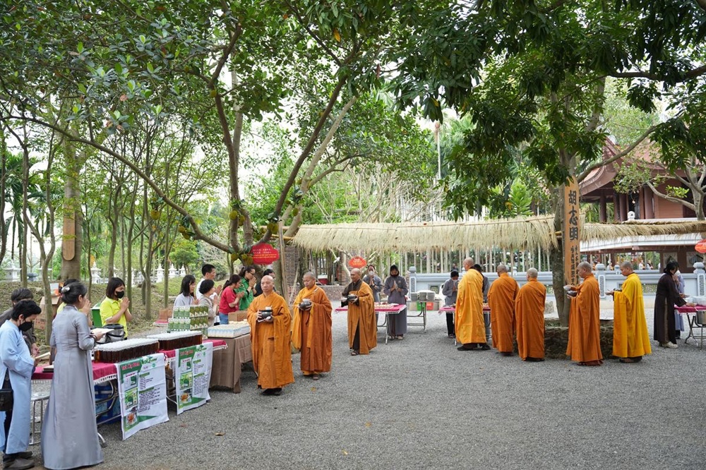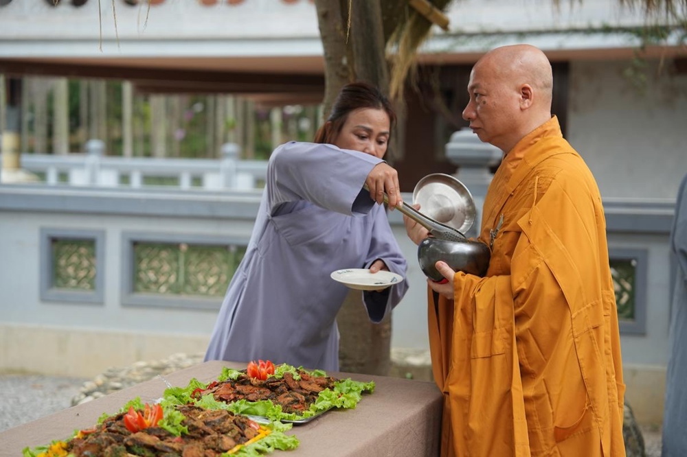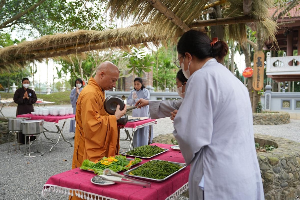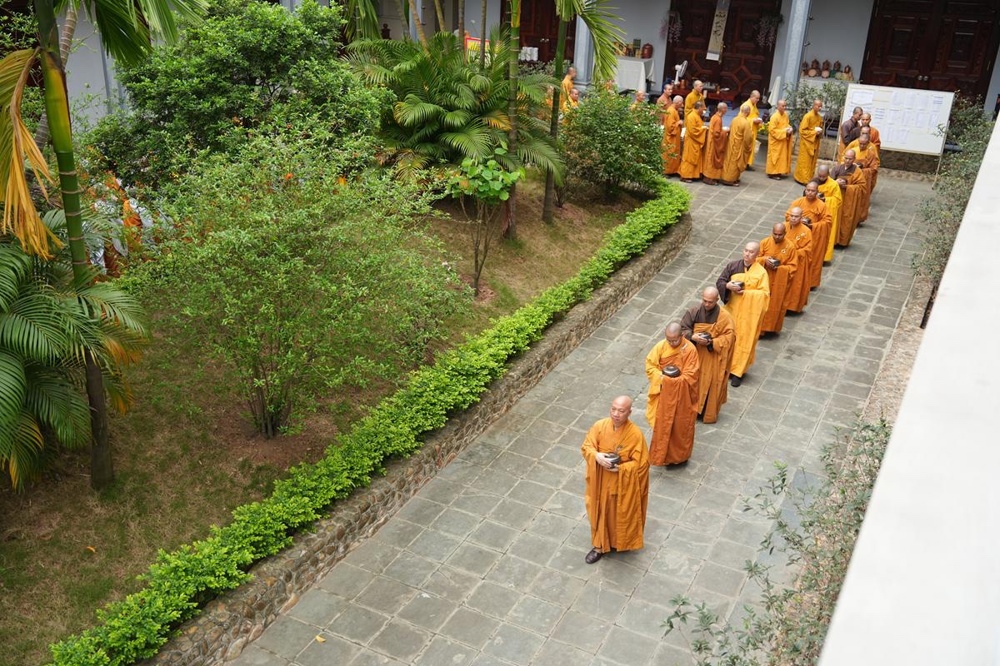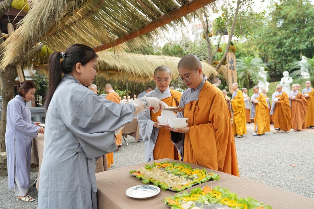 Trong khuôn khổ khóa tu, hình ảnh chư Tăng Ni thực hành hạnh khất thực trong bữa trưa nay đã trở thành điểm nhấn sâu sắc. Từng bước chân an lạc, từng chiếc bình bát nâng trong tay đã tái hiện sinh động hình ảnh của Đức Phật và Tăng đoàn thuở xưa. Đây không chỉ là nghi thức truyền thống, mà là pháp tu căn bản nuôi dưỡng tâm khiêm cung, buông bỏ ngã chấp.