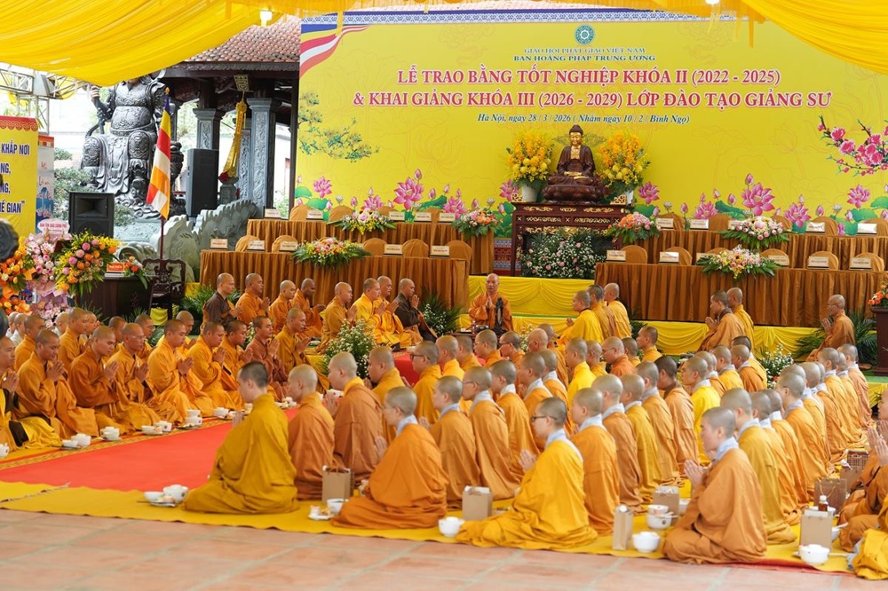 Ngày 27/03/2026 (nhằm ngày 09/02 năm Bính Ngọ), hơn 200 hành giả là chư Tăng Ni Giảng sinh thuộc Lớp Đào tạo Cao cấp Giảng sư khu vực phía Bắc khóa I, khóa II và khóa III đã bước sang ngày tu học thứ tư trong khóa tu xuất sĩ với chủ đề “Thắp sáng tình huynh đệ” tại chùa Vạn Phúc (xã Sóc Sơn, Hà Nội).