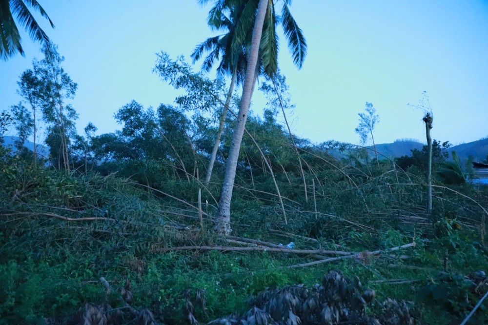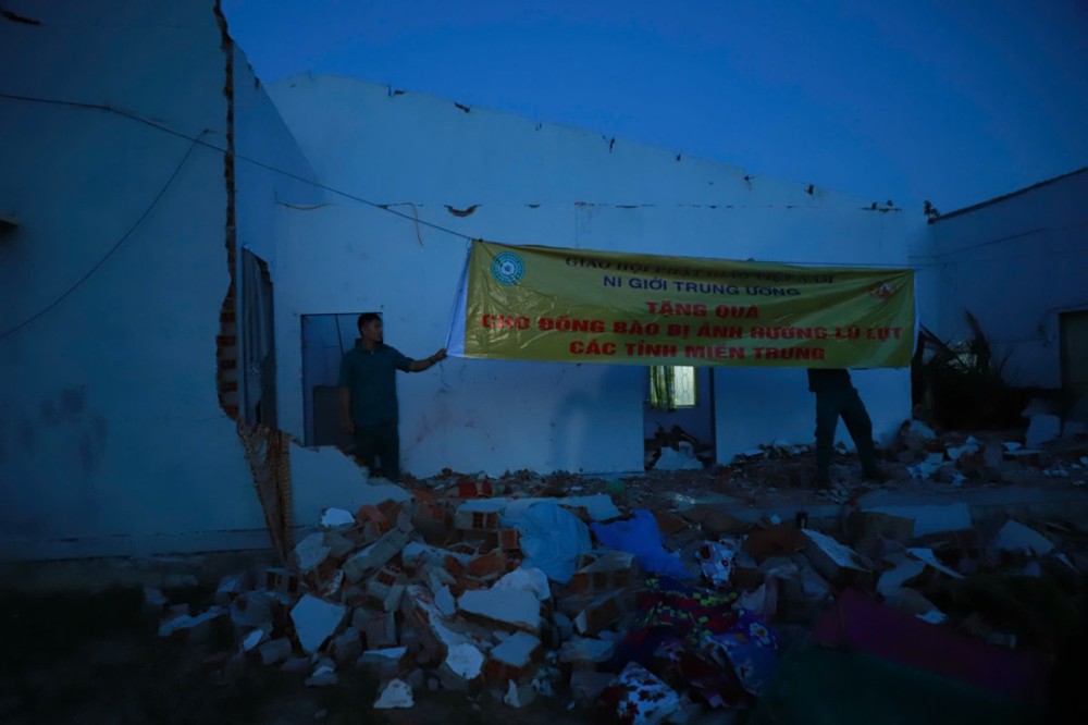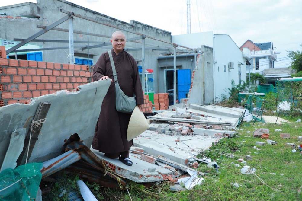 Buổi sáng, đoàn đã đến Trường Trung cấp Phật học Nguyên Thiều (Bình Định cũ) – cơ sở Phật học nằm gần vùng tâm bão, bị thiệt hại nghiêm trọng về cơ sở vật chất. Đoàn đã thăm hỏi, cúng dường và hỗ trợ một hộ gia đình có người thân mất tích trong bão, nhằm chia sẻ phần nào khó khăn, mất mát mà người dân đang gánh chịu.