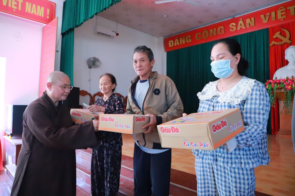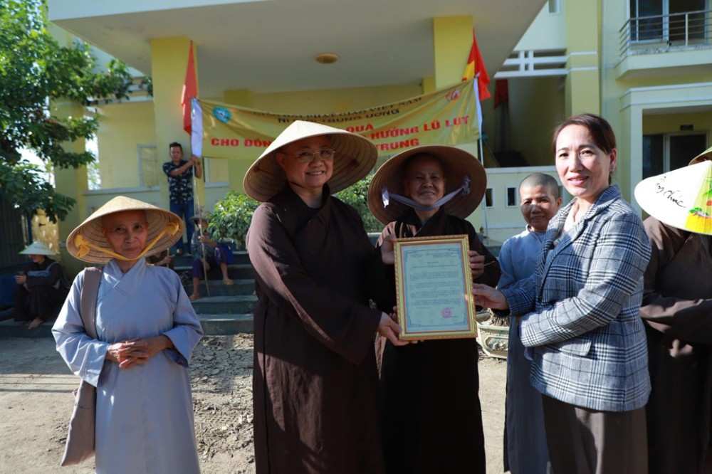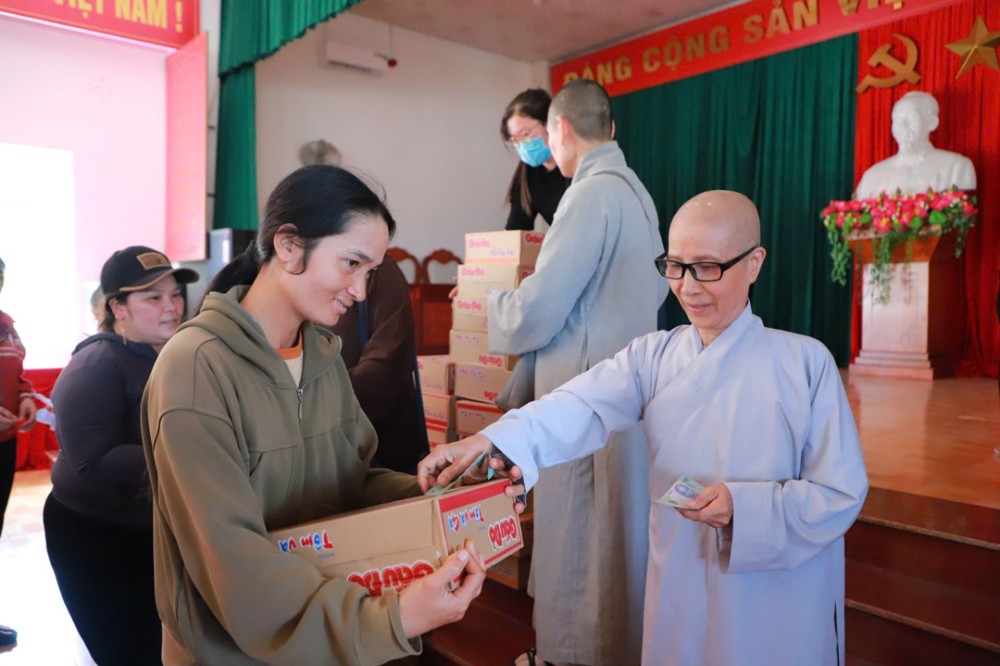 Thay mặt Ni giới tỉnh và bà con nhân dân, chúng con xin gửi lời cảm tạ sâu sắc đến đoàn. Sự hiện diện và sẻ chia của quý Ni sư là nguồn động viên lớn, giúp bà con và chư Ni địa phương vững lòng vượt qua khó khăn.”