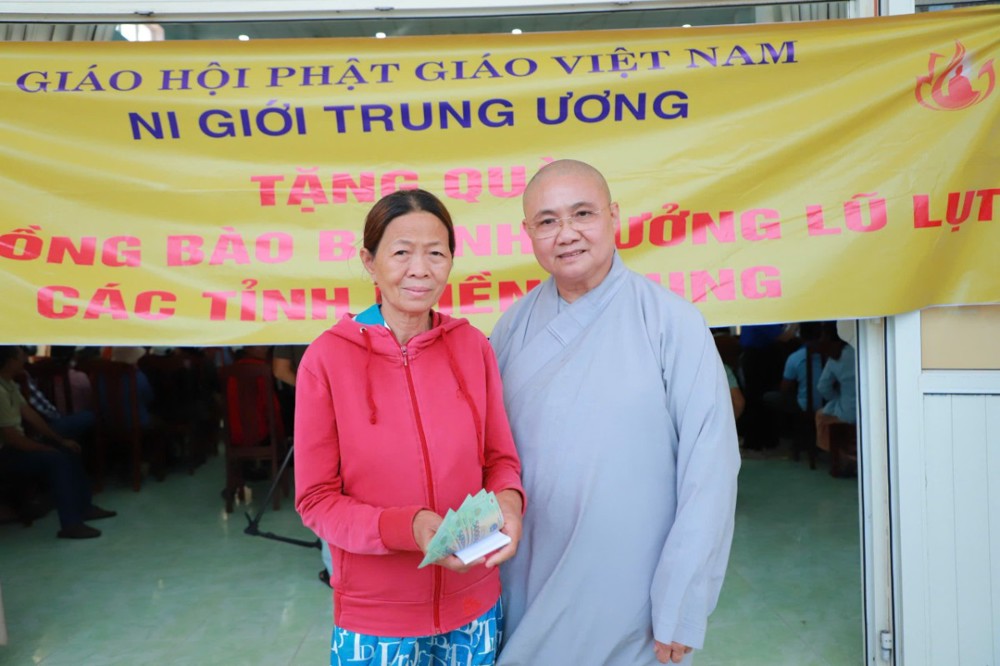 Đáp lại, Ni sư Thích Nữ Chơn Như bày tỏ: “Trước sự lân mẫn của chư Tôn đức Ni Trung ương, Ni giới tỉnh nhà và bà con nhân dân vô cùng xúc động. Chúng con tri ân Ni trưởng Thích Nữ Nhật Khương – Trưởng PBNG Trung ương – đã luôn quan tâm và chỉ đạo những hoạt động cứu trợ ý nghĩa này.