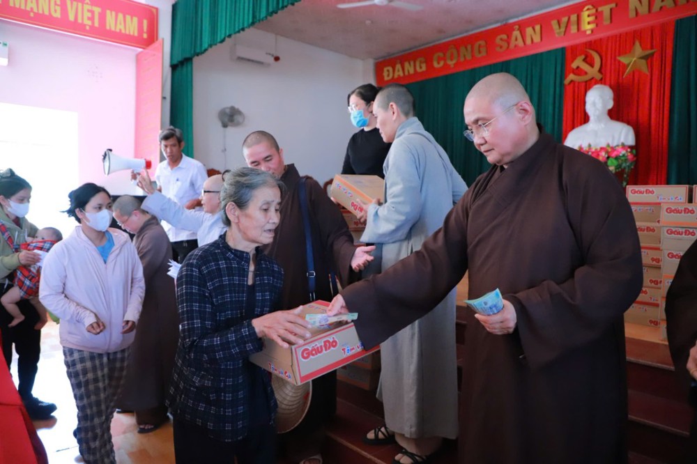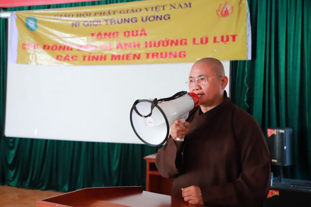 Phát biểu tại buổi trao quà, Ni sư Thích Nữ Chúc Tường chia sẻ: “Chuyến đi hôm nay là phần tiếp nối trong chuỗi hoạt động cứu trợ miền Trung của Phân ban Ni giới Trung ương. Mỗi phần quà tuy nhỏ nhưng là tấm lòng của chư Ni và Phật tử cả nước, mong bà con vững vàng vượt qua mất mát, sớm khôi phục cuộc sống và đón mùa xuân an vui.”