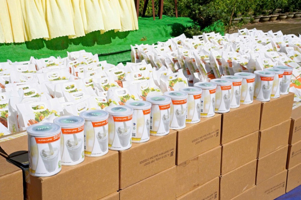 Trong chương trình, đoàn đã trao 400 phần quà đến người dân vùng lũ; mỗi phần gồm 1 triệu đồng tiền mặt, thuốc hỗ trợ tim mạch – tăng đề kháng, cùng sữa, gạo và các nhu yếu phẩm thiết yếu.