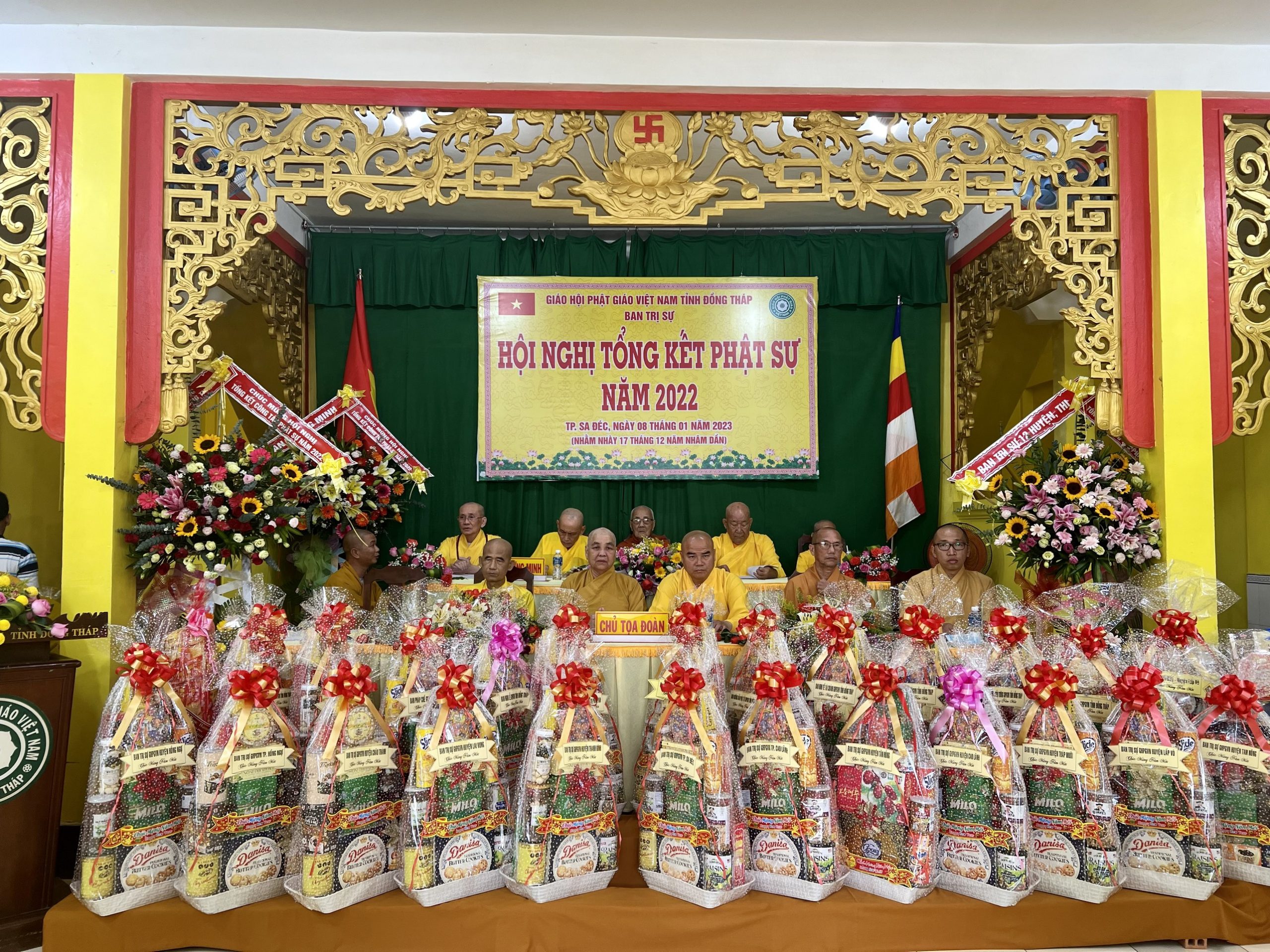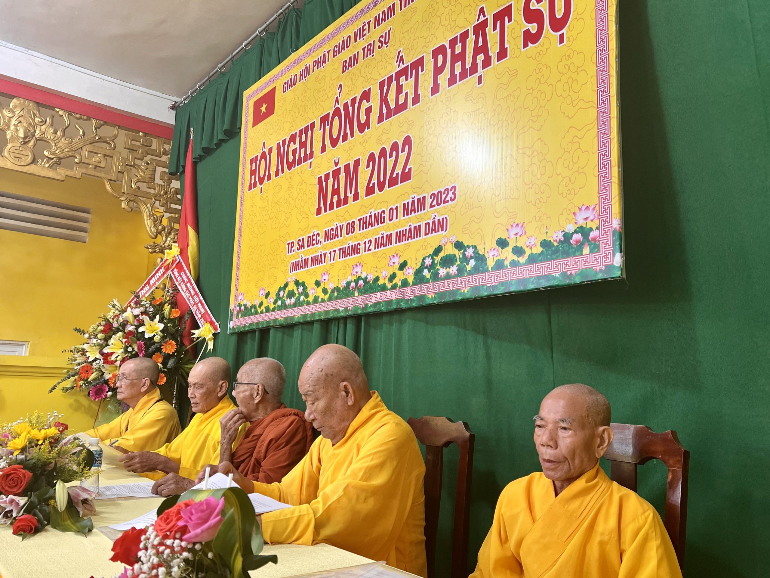Theo đó, Thượng toạ Thích Minh Sơn báo cáo tổng kết công tác Phật sự năm 2022. Ban Trị sự đã tổ chức thành công Đại hội Đại biểu cấp huyện thị, thành phố và tỉnh Đồng Tháp; Tại Đại hội Đại biểu Phật giáo tỉnh Đồng Tháp nhiệm kỳ IX đã cơ cấu gồm 04 vị thành viên Chứng minh Ban Trị sự, 02 vị thành viên Chứng minh Phân ban Ni giới; 57 thành viên Ban Trị sự ( 21 vị Ủy viên Thường trực; 36 Ủy viên) do Hòa thượng Thích Chơn Minh - Ủy viên HĐTS làm Trưởng ban.