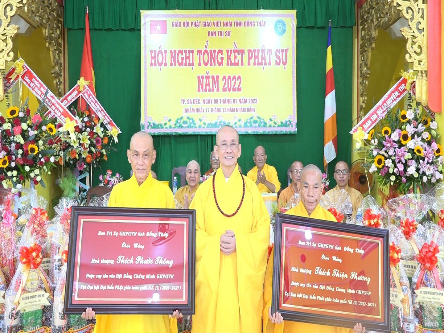 Cử đoàn Đại biểu tham dự Đại hội Đại biểu Phật giáo Toàn quốc lần IX nhiệm kỳ (2022 – 2027). Tại Đại hội kỳ này, Ban Trị sự GHPGVN tỉnh Đồng Tháp đã được 02 cấp Hội đồng Chứng minh và Hội đồng Trị sự xem xét chấp thuận suy tôn và suy cử bổ sung như sau: có 4 vị Hòa thượng tham gia HĐCM GHPGVN trong đó có 2 vị tái suy tôn HT. Thích Thiện An, HT. Thích Nhựt Quang; 2 vị suy tôn bổ sung HT. Thích Thiện Phương, HT. Thích Phước Thông; 2 vị tham gia HĐTS là HT. Thích Chơn Minh - Trưởng ban Trị sự Phật giáo tỉnh tái suy cử và TT. Thích Tĩnh Triệt - Phó trưởng Ban Thường trực Phật giáo tỉnh được suy cử mới.